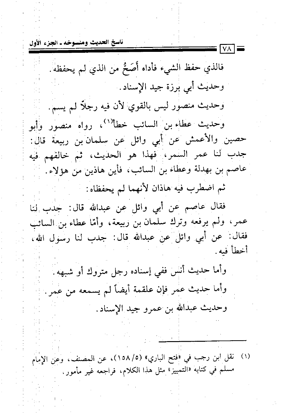 وحديث عطاء بن السائب خطأ، رواه منصور وأبو حصين والأعمش عن أبي وائل عن سلمان بن ربيعة قال: جدب لنا عمر السمر، فهذا هو الحديث، ثم خالفهم فيه عاصم بن بهدلة وعطاء بن السائب، فأين هاذين من هؤلاء.