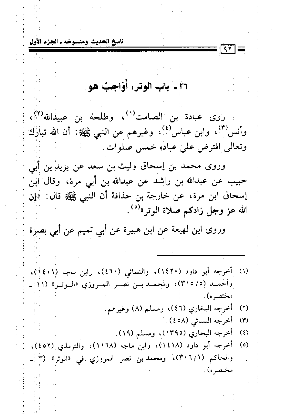 روى عبادة بن الصامت، وطلحة بن عبيد الله، وأنس، وابن عباس، وغيرهم عن النبي صلى الله عليه وسلم: أن الله تبارك وتعالى افترض على عباده خمس صلوات.