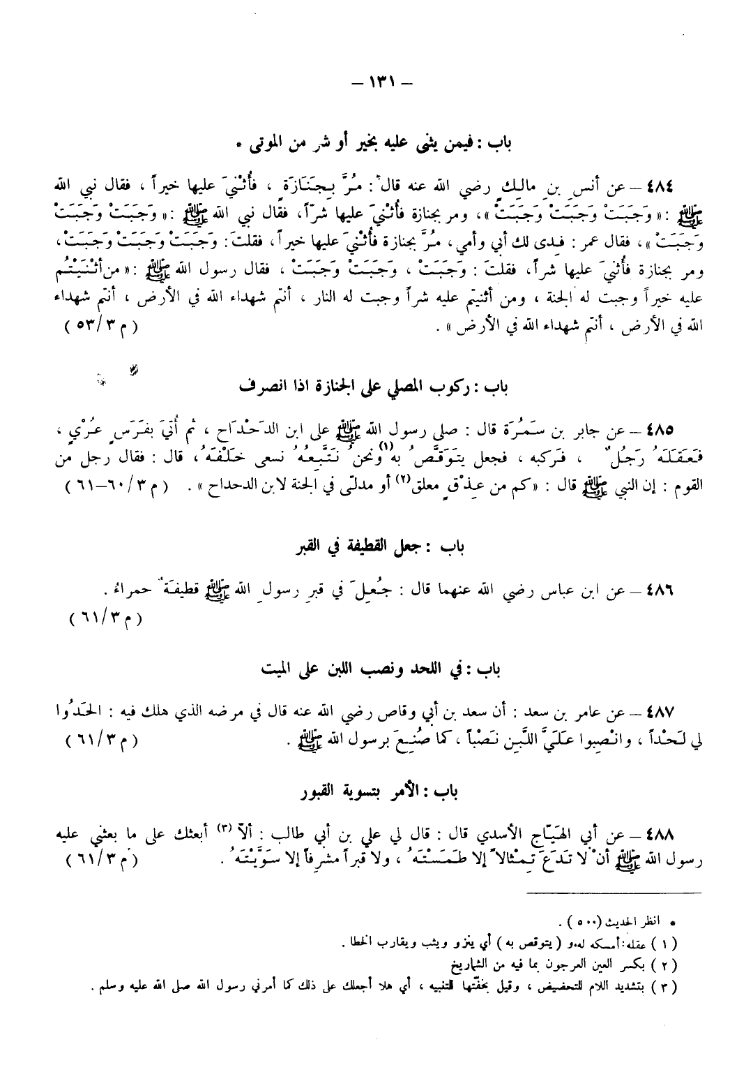 486 - عَنْ ابْنِ عَبَّاسٍ - رضي الله عنهما - قَالَ جُعِلَ في قَبْرِ رَسُولِ اللهِ - صَلَّى اللهُ عَلَيْهِ وَسَلَّمَ - قَطِيفَةٌ حَمْرَاءُ. (م 3/ 61)