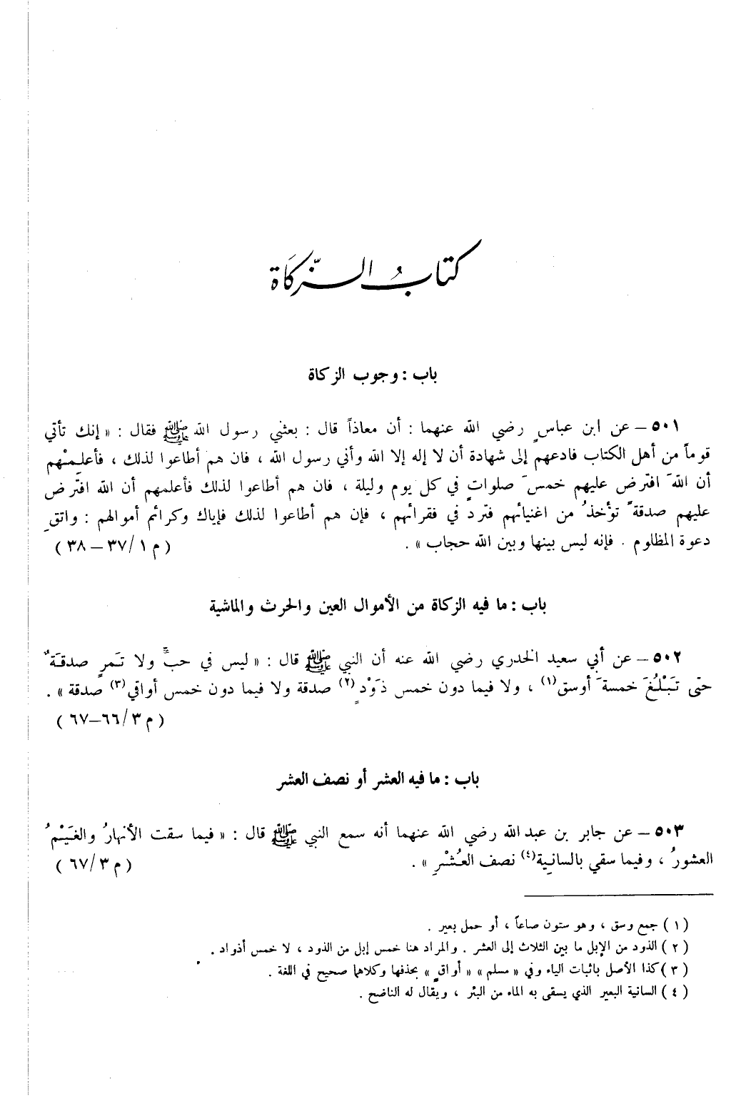 503 - عن جَابِرِ بْنِ عَبْدِ اللهِ - رضي الله عنهما - أَنَّهُ سَمِعَ النَّبِيَّ - صَلَّى اللهُ عَلَيْهِ وَسَلَّمَ - قَالَ فِيمَا سَقَتْ الْأَنْهَارُ وَالْغَيْمُ الْعُشُورُ وَفِيمَا سُقِيَ بِالسَّانِيَةِ (¬4) نِصْفُ الْعُشْرِ. (م 3/ 67)