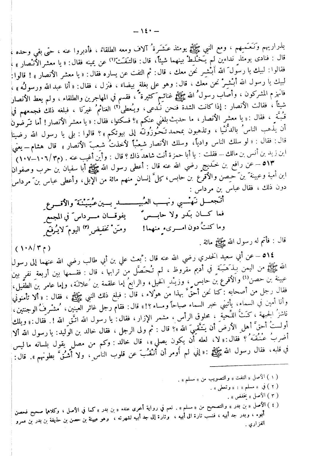 (¬4) الأصل "بن بدر" والتصحيح من "مسلم". نعم في رواية أخرى عنده "بن بدر" كما في الأصل، وكلاهما صحيح فحصن أبوه، وبدر جد أبيه، فنسب تارة إلى أبيه، وتارة إلى جد أبيه لشهرته، وهو عيينة بن حصن بن حذيفة بن بدر بن عمرو الفزاري.