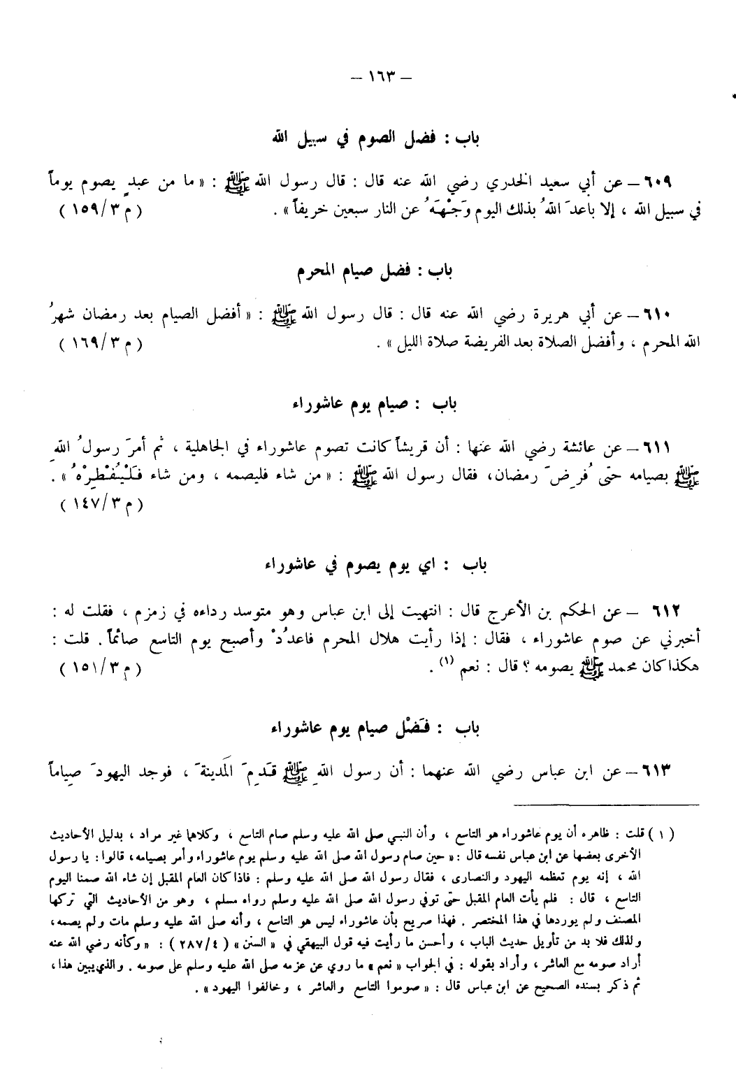 613 - عَنْ ابْنِ عَبَّاسٍ رَضِيَ اللهُ عَنْهُمَا أَنَّ رَسُولَ اللهِ - صَلَّى اللهُ عَلَيْهِ وَسَلَّمَ - قَدِمَ الْمَدِينَةَ فَوَجَدَ الْيَهُودَ صِيَامًا