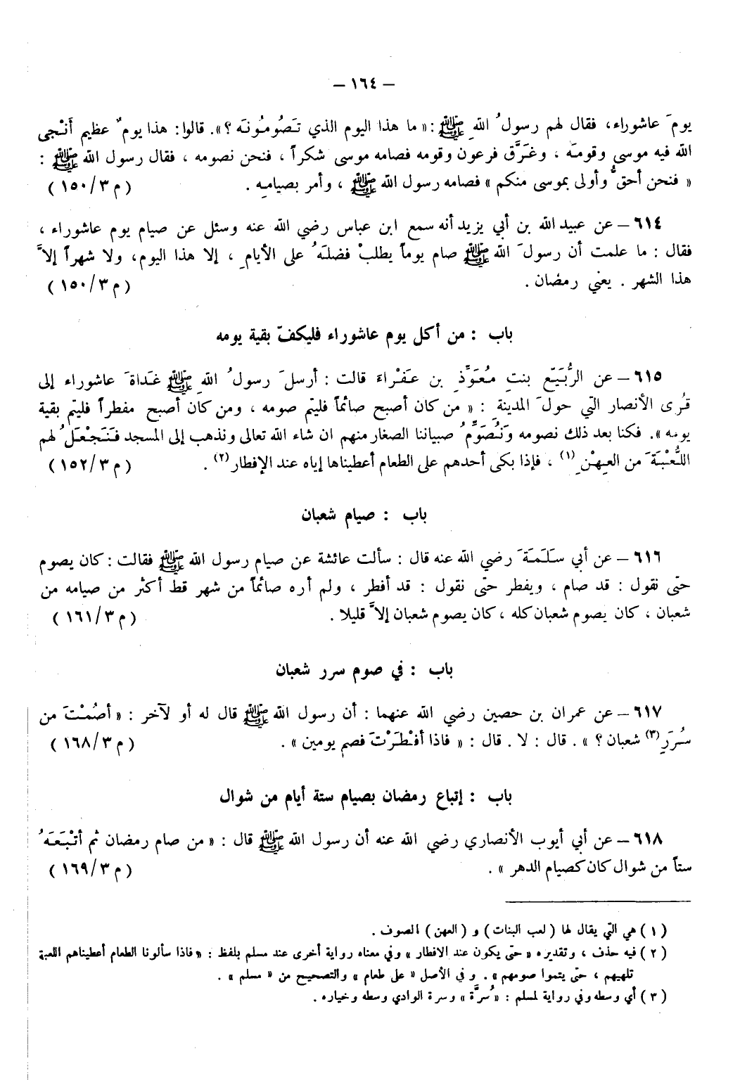 617 - عَنْ عِمْرَانَ بْنِ حُصَيْنٍ رَضِيَ اللهُ عَنْهُمَا أَنَّ رَسُولَ اللهِ - صَلَّى اللهُ عَلَيْهِ وَسَلَّمَ - قَالَ لَهُ أَوْ لِآخَرَ أَصُمْتَ مِنْ سُرَرِ (¬3) شَعْبَانَ قَالَ لَا قَالَ فَإِذَا أَفْطَرْتَ فَصُمْ يَوْمَيْنِ. (م 3/ 168)