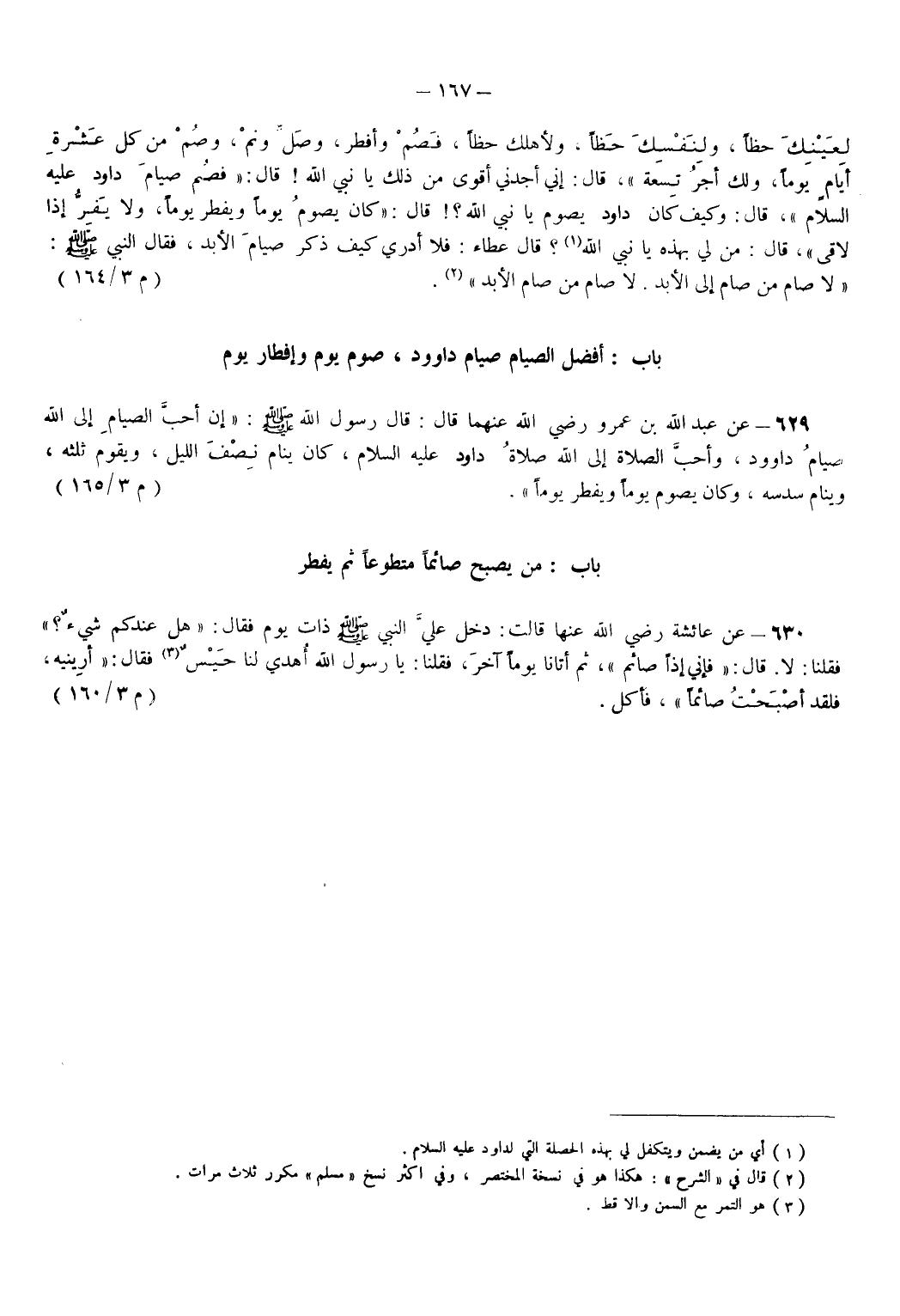 630 - عَنْ عَائِشَةَ - رضي الله عنها - قَالَتْ: دَخَلَ عَلَيَّ النَّبِيُّ - صَلَّى اللهُ عَلَيْهِ وَسَلَّمَ - ذَاتَ يَوْمٍ فَقَالَ هَلْ عِنْدَكُمْ شَيْءٌ فَقُلْنَا لَا قَالَ فَإِنِّي إِذَنْ صَائِمٌ ثُمَّ أَتَانَا يَوْمًا آخَرَ فَقُلْنَا يَا رَسُولَ اللهِ أُهْدِيَ لَنَا حَيْسٌ (¬3) فَقَالَ أَرِينِيهِ فَلَقَدْ أَصْبَحْتُ صَائِمًا فَأَكَلَ. (م 3/ 160)