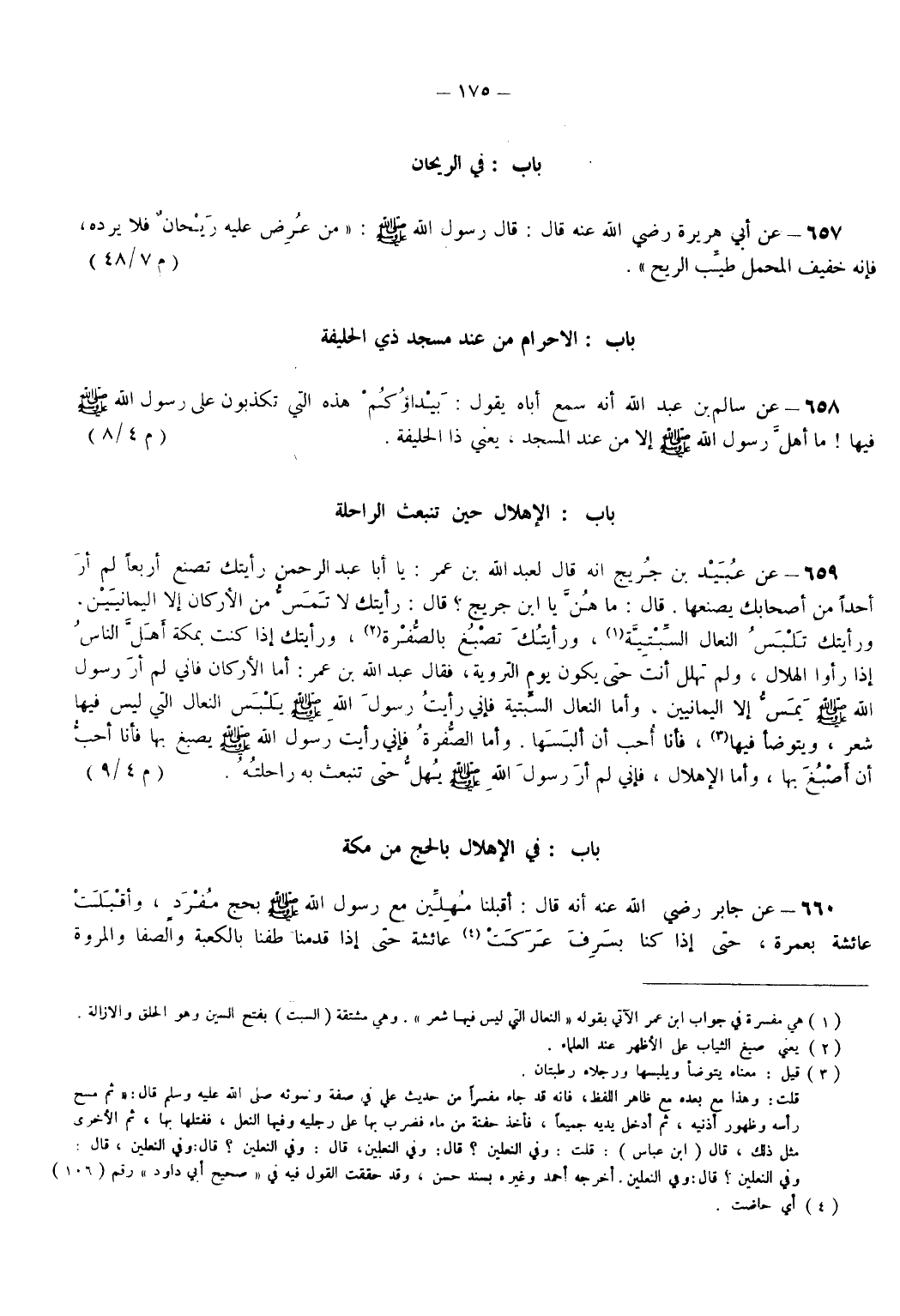 (¬1) هي مفسرة في جواب ابن عمر الآتي بقوله "النعال التى ليس فيها شعر". وهي مشتقة (السبت) بفتح السين وهو الحلق والإزالة.