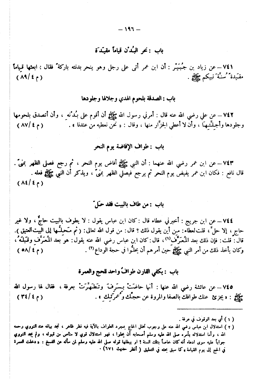 745 - عَنْ عَائِشَةَ - رضي الله عنها - أَنَّهَا حَاضَتْ بِسَرِفَ وتَطَهَّرَتْ بِعَرَفَةَ فَقَالَ لَهَا رَسُولُ اللهِ - صَلَّى اللهُ عَلَيْهِ وَسَلَّمَ - يُجْزِئُ عَنْكِ طَوَافُكِ بِالصَّفَا وَالْمَرْوَةِ عَنْ حَجِّكِ وَعُمْرَتِكِ. (م 4/ 34)