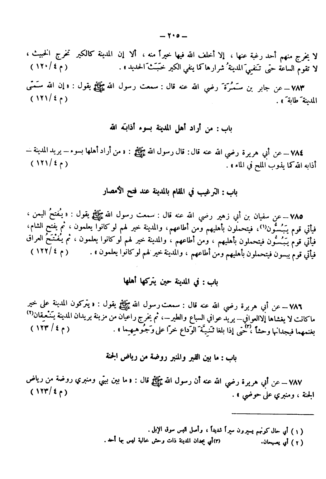 785 - عَنْ سُفْيَانَ بْنِ أَبِي زُهَيْرٍ - رضي الله عنه - قَالَ سَمِعْتُ رَسُولَ اللهِ - صَلَّى اللهُ عَلَيْهِ وَسَلَّمَ - يَقُولُ يُفْتَحُ الْيَمَنُ فَيَأْتِي قَوْمٌ يَبُسُّونَ (¬1) فَيَتَحَمَّلُونَ بِأَهْلِيهِمْ وَمَنْ أَطَاعَهُمْ وَالْمَدِينَةُ خَيْرٌ لَهُمْ لَوْ كَانُوا يَعْلَمُونَ ثُمَّ يُفْتَحُ الشَّامُ فَيَأْتِي قَوْمٌ يَبُسُّونَ فَيَتَحَمَّلُونَ بِأَهْلِيهِمْ وَمَنْ أَطَاعَهُمْ وَالْمَدِينَةُ خَيْرٌ لَهُمْ لَوْ كَانُوا يَعْلَمُونَ ثُمَّ يُفْتَحُ الْعِرَاقُ فَيَأْتِي قَوْمٌ يَبُسُّونَ فَيَتَحَمَّلُونَ بِأَهْلِيهِمْ وَمَنْ أَطَاعَهُمْ وَالْمَدِينَةُ خَيْرٌ لَهُمْ لَوْ كَانُوا يَعْلَمُونَ. (م 4/ 122)