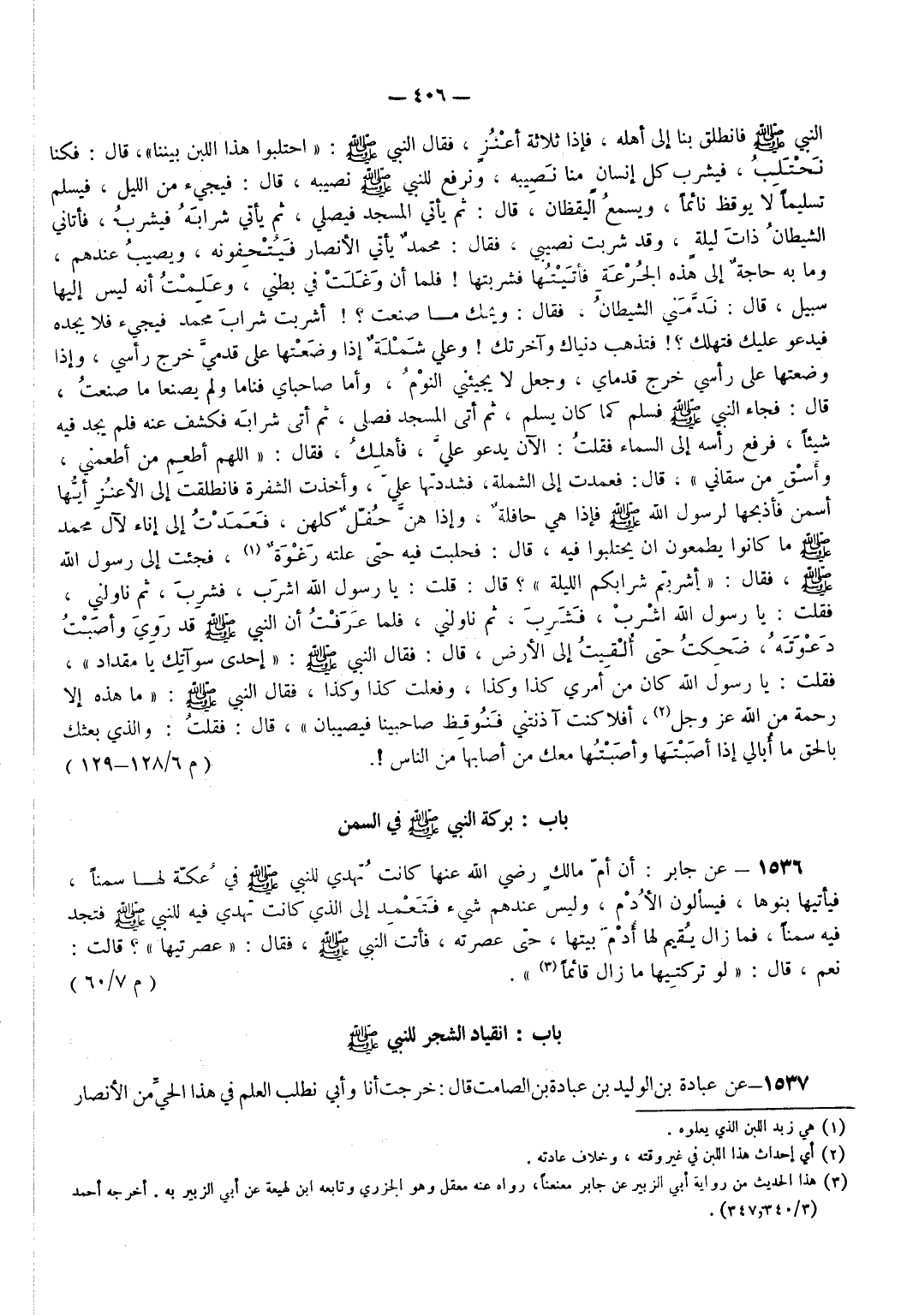 النَّبِيَّ - صَلَّى اللَّهُ عَلَيْهِ وَسَلَّمَ - فَانْطَلَقَ بِنَا إِلَى أَهْلِهِ فَإِذَا ثَلَاثَةُ أَعْنُزٍ فَقَالَ النَّبِيُّ - صَلَّى اللَّهُ عَلَيْهِ وَسَلَّمَ - احْتَلِبُوا هَذَا اللَّبَنَ بَيْنَنَا قَالَ فَكُنَّا نَحْتَلِبُ فَيَشْرَبُ كُلُّ إِنْسَانٍ مِنَّا نَصِيبَهُ وَنَرْفَعُ لِلنَّبِيِّ - صَلَّى اللَّهُ عَلَيْهِ وَسَلَّمَ - نَصِيبَهُ قَالَ فَيَجِيءُ مِنْ اللَّيْلِ فَيُسَلِّمُ تَسْلِيمًا لَا يُوقِظُ نَائِمًا وَيُسْمِعُ الْيَقْظَانَ قَالَ ثُمَّ يَأْتِي الْمَسْجِدَ فَيُصَلِّي ثُمَّ يَأْتِي شَرَابَهُ فَيَشْرَبُ فَأَتَانِي الشَّيْطَانُ ذَاتَ لَيْلَةٍ وَقَدْ شَرِبْتُ نَصِيبِي فَقَالَ مُحَمَّدٌ يَأْتِي الْأَنْصَارَ فَيُتْحِفُونَهُ وَيُصِيبُ عِنْدَهُمْ ومَا بِهِ حَاجَةٌ إِلَى هَذِهِ الْجُرْعَةِ فَأَتَيْتُهَا فَشَرِبْتُهَا فَلَمَّا أَنْ وَغَلَتْ فِي بَطْنِي وَعَلِمْتُ أَنَّهُ لَيْسَ إِلَيْهَا سَبِيلٌ قَالَ نَدَّمَنِي الشَّيْطَانُ فَقَالَ وَيْحَكَ مَا صَنَعْتَ أَشَرِبْتَ شَرَابَ مُحَمَّدٍ فَيَجِيءُ فَلَا يَجِدُهُ فَيَدْعُو عَلَيْكَ فَتَهْلِكُ فَتَذْهَبُ دُنْيَاكَ وَآخِرَتُكَ وَعَلَيَّ شَمْلَةٌ إِذَا وَضَعْتُهَا عَلَى قَدَمَيَّ خَرَجَ رَأْسِي وَإِذَا وَضَعْتُهَا عَلَى رَأْسِي خَرَجَ قَدَمَايَ وَجَعَلَ لَا يَجِيئُنِي النَّوْمُ وَأَمَّا صَاحِبَايَ فَنَامَا وَلَمْ يَصْنَعَا مَا صَنَعْتُ قَالَ فَجَاءَ النَّبِيُّ - صَلَّى اللَّهُ عَلَيْهِ وَسَلَّمَ - فَسَلَّمَ كَمَا كَانَ يُسَلِّمُ ثُمَّ أَتَى الْمَسْجِدَ فَصَلَّى ثُمَّ أَتَى شَرَابَهُ فَكَشَفَ عَنْهُ فَلَمْ يَجِدْ فِيهِ شَيْئًا فَرَفَعَ رَأْسَهُ إِلَى السَّمَاءِ فَقُلْتُ الْآنَ يَدْعُو عَلَيَّ فَأَهْلِكُ فَقَالَ اللَّهُمَّ أَطْعِمْ مَنْ أَطْعَمَنِي وَأَسْقِ مَنْ سْقَانِي قَالَ فَعَمَدْتُ إِلَى الشَّمْلَةِ فَشَدَدْتُهَا عَلَيَّ وَأَخَذْتُ الشَّفْرَةَ فَانْطَلَقْتُ إِلَى الْأَعْنُزِ أَيُّهَا أَسْمَنُ فَأَذْبَحُهَا لِرَسُولِ اللَّهِ - صَلَّى اللَّهُ عَلَيْهِ وَسَلَّمَ - فَإِذَا هِيَ حَافِلَةٌ وَإِذَا هُنَّ حُفَّلٌ كُلُّهُنَّ فَعَمَدْتُ إِلَى إِنَاءٍ لِآلِ مُحَمَّدٍ - صَلَّى اللَّهُ عَلَيْهِ وَسَلَّمَ - مَا كَانُوا يَطْمَعُونَ أَنْ يَحْتَلِبُوا فِيهِ قَالَ فَحَلَبْتُ فِيهِ حَتَّى عَلَتْهُ رَغْوَةٌ (¬1) فَجِئْتُ إِلَى رَسُولِ اللَّهِ - صَلَّى اللَّهُ عَلَيْهِ وَسَلَّمَ - فَقَالَ أَشَرِبْتُمْ شَرَابَكُمْ اللَّيْلَةَ قَالَ قُلْتُ يَا رَسُولَ اللَّهِ اشْرَبْ فَشَرِبَ ثُمَّ نَاوَلَنِي فَقُلْتُ يَا رَسُولَ اللَّهِ اشْرَبْ فَشَرِبَ ثُمَّ نَاوَلَنِي فَلَمَّا عَرَفْتُ أَنَّ النَّبِيَّ - صَلَّى اللَّهُ عَلَيْهِ وَسَلَّمَ - قَدْ رَوِيَ وَأَصَبْتُ دَعْوَتَهُ ضَحِكْتُ حَتَّى أُلْقِيتُ إِلَى الْأَرْضِ قَالَ فَقَالَ النَّبِيُّ - صَلَّى اللَّهُ عَلَيْهِ وَسَلَّمَ - إِحْدَى سَوْآتِكَ يَا مِقْدَادُ فَقُلْتُ يَا رَسُولَ اللَّهِ كَانَ مِنْ أَمْرِي كَذَا وَكَذَا وَفَعَلْتُ كَذَا وكذا فَقَالَ النَّبِيُّ - صَلَّى اللَّهُ عَلَيْهِ وَسَلَّمَ - مَا هَذِهِ إِلَّا رَحْمَةٌ مِنْ اللَّهِ عز وجل (¬2) أَفَلَا كُنْتَ آذَنْتَنِي فَنُوقِظَ صَاحِبَيْنَا فَيُصِيبَانِ مِنْهَا قَالَ فَقُلْتُ وَالَّذِي بَعَثَكَ بِالْحَقِّ مَا أُبَالِي إِذَا أَصَبْتَهَا وَأَصَبْتُهَا مَعَكَ مَنْ أَصَابَهَا مِنْ النَّاسِ. (م 6/ 128 - 129)