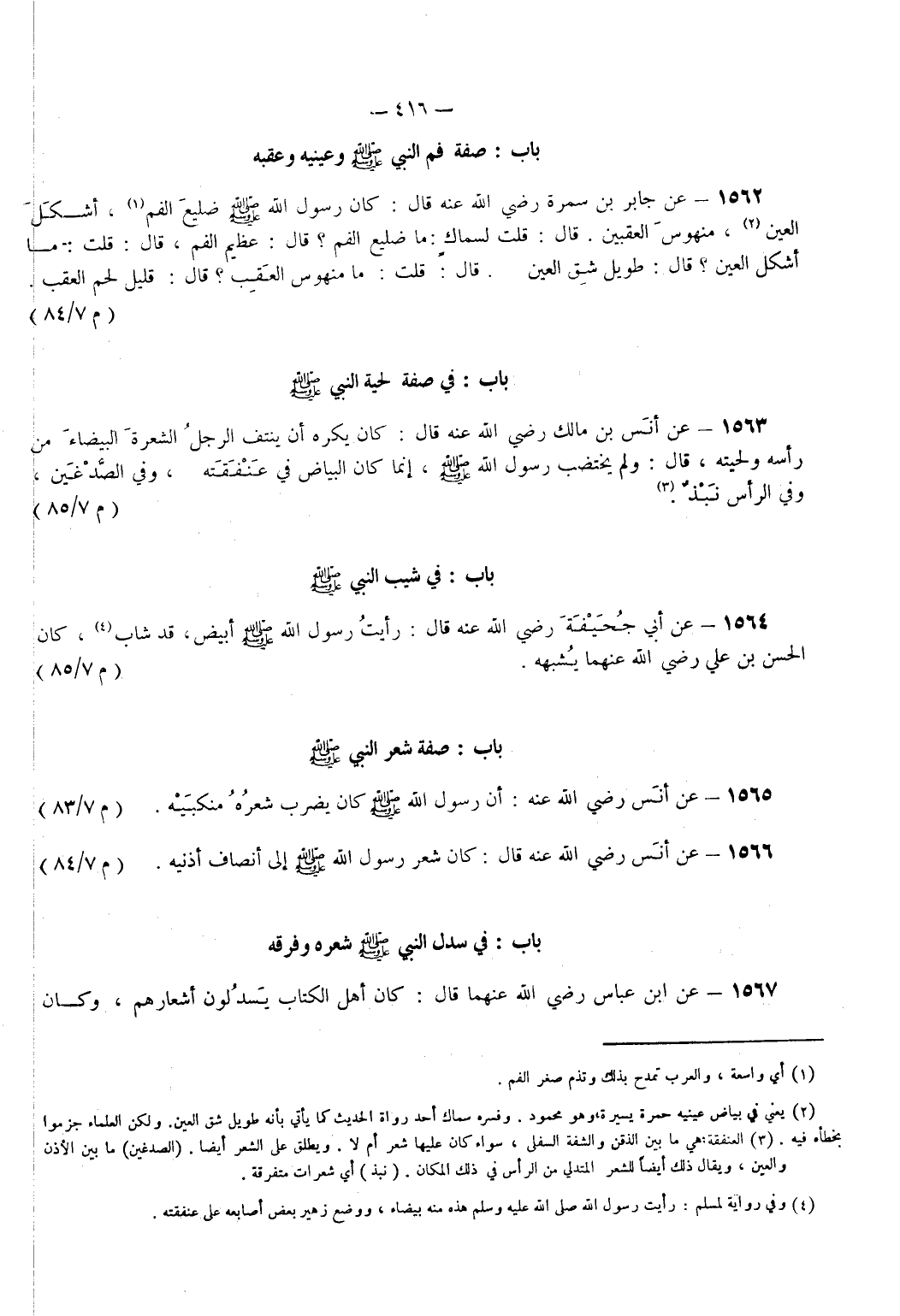 (¬2) يعني في بياض عينيه حمرة يسيرة، وهو محمود. وفسره سماك أحد رواة الحديث كما يأتي بأنه طويل شق العين. ولكن العلماء جزموا بخطأه فيه.