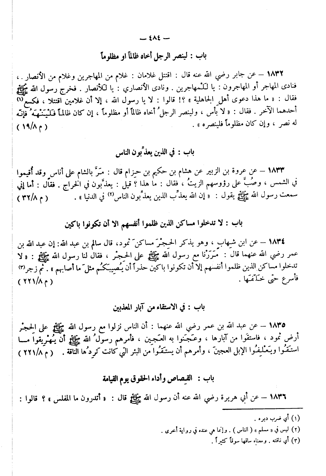 1833 - عَنْ عُرْوَةَ بن الزبير عَنْ هِشَامِ بْنِ حَكِيمِ بْنِ حِزَامٍ قَالَ مَرَّ بِالشَّامِ عَلَى أُنَاسٍ وَقَدْ أُقِيمُوا فِي الشَّمْسِ وَصُبَّ عَلَى رُءُوسِهِمْ الزَّيْتُ فَقَالَ مَا هَذَا قِيلَ يُعَذَّبُونَ فِي الْخَرَاجِ فَقَالَ أَمَا إِنِّي سَمِعْتُ رَسُولَ اللَّهِ - صَلَّى اللَّهُ عَلَيْهِ وَسَلَّمَ - يَقُولُ إِنَّ اللَّهَ يُعَذِّبُ الَّذِينَ يُعَذِّبُونَ الناس (¬2) فِي الدُّنْيَا. (م 8/ 32)