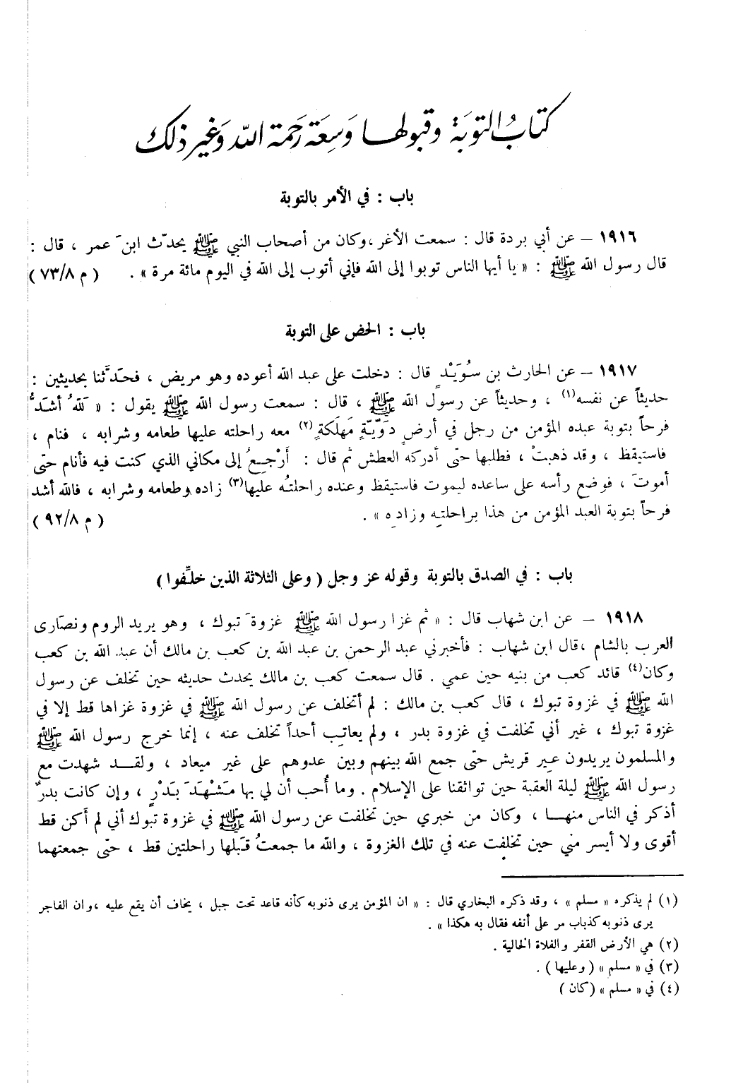 كتاب التوبة وفضلها وسعة رحمة الله وغير ذلك