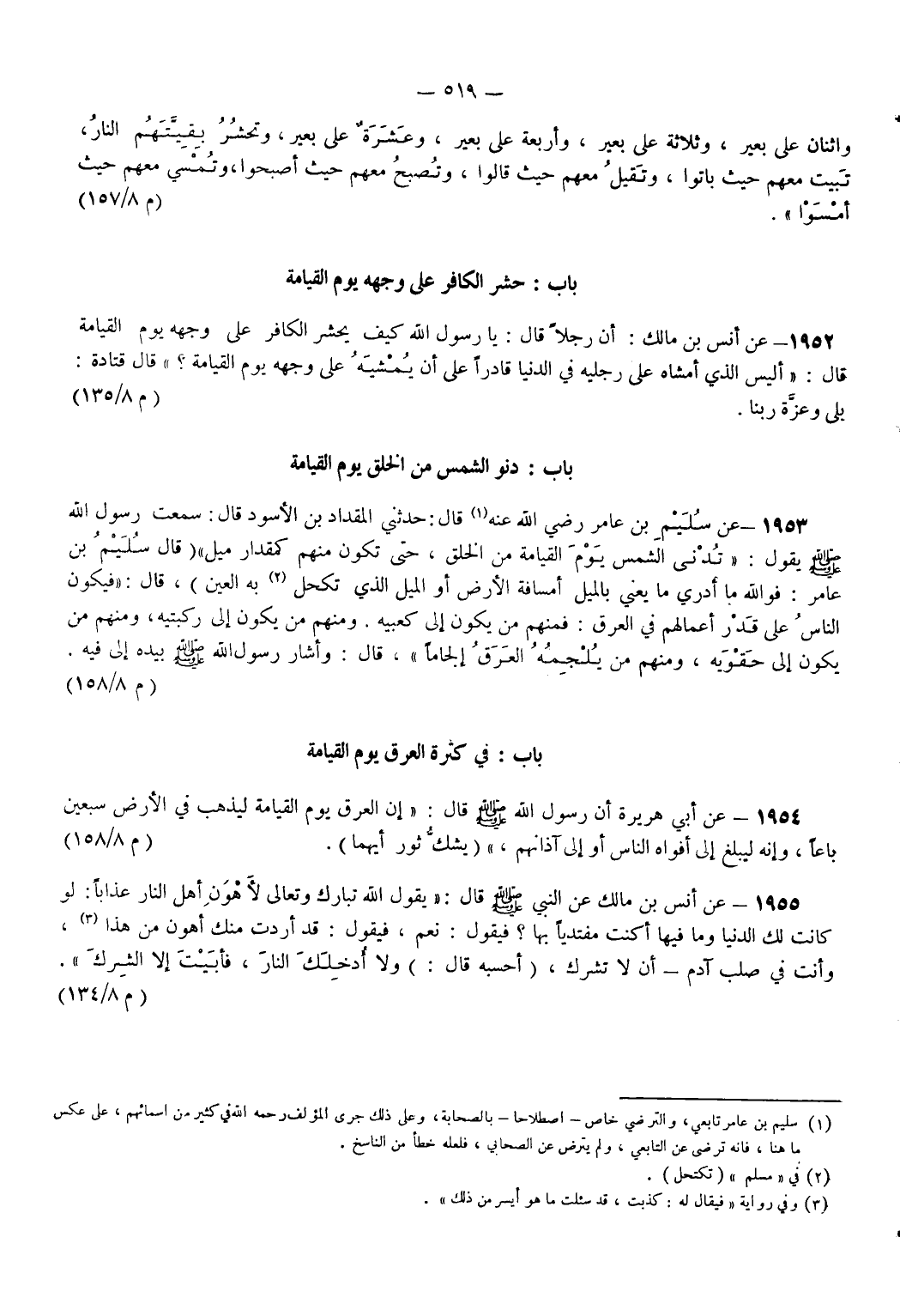 1955 - عَنْ أَنَسِ بْنِ مَالِكٍ عَنْ النَّبِيِّ - صَلَّى اللَّهُ عَلَيْهِ وَسَلَّمَ - قَالَ يَقُولُ اللَّهُ تَبَارَكَ وَتَعَالَى لِأَهْوَنِ أَهْلِ النَّارِ عَذَابًا لَوْ كَانَتْ لَكَ الدُّنْيَا وَمَا فِيهَا أَكُنْتَ مُفْتَدِيًا بِهَا فَيَقُولُ نَعَمْ فَيَقُولُ قَدْ أَرَدْتُ مِنْكَ أَهْوَنَ مِنْ هَذَا (¬3) وَأَنْتَ فِي صُلْبِ آدَمَ أَنْ لَا تُشْرِكَ أَحْسِبُهُ قَالَ وَلَا أُدْخِلَكَ النَّارَ فَأَبَيْتَ إِلَّا الشِّرْكَ. (م 8/ 134)