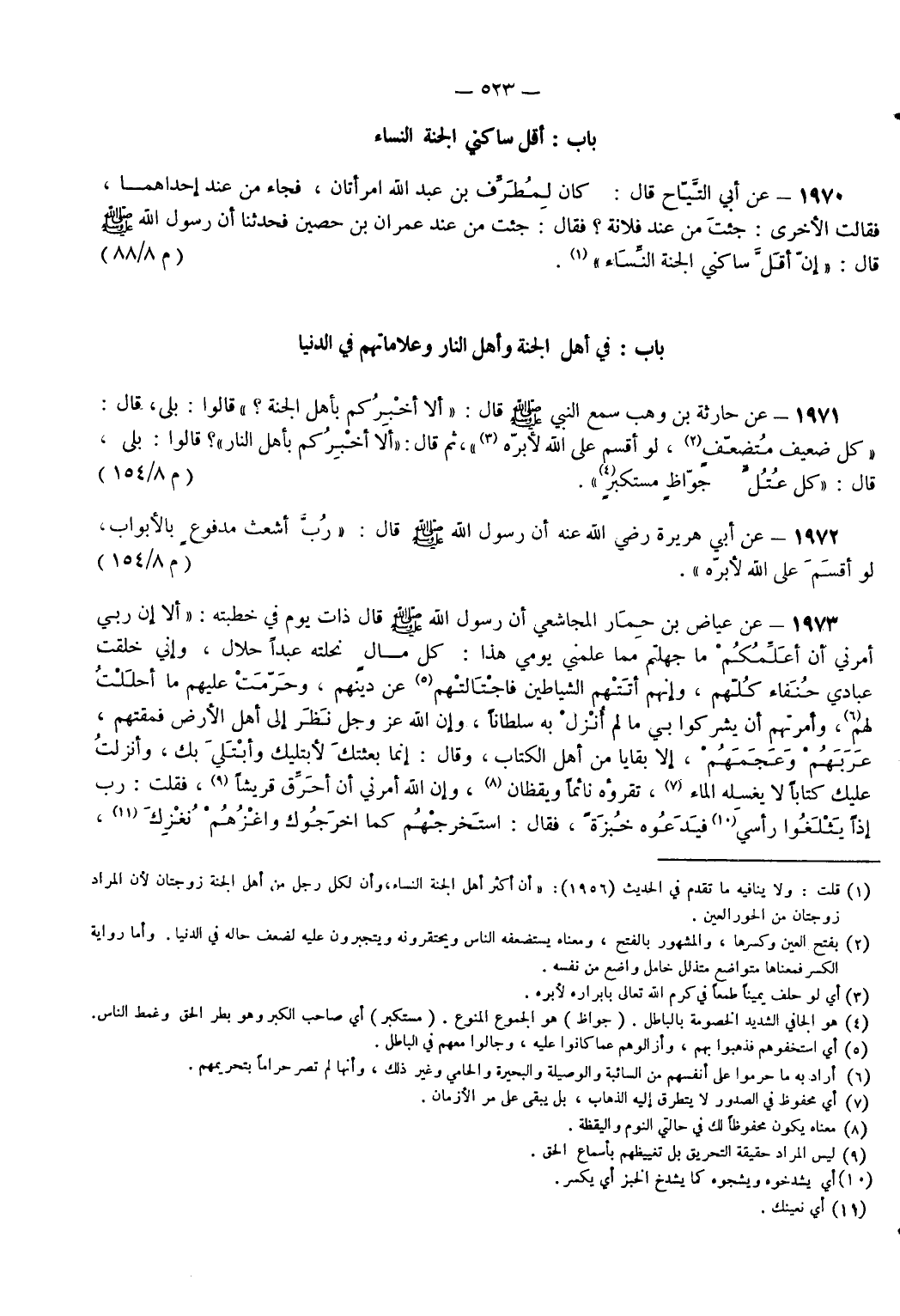 (¬1) قلت: ولا ينافيه ما تقدم في الحديث (1956): "أن أكثر أهل الجنة النساء، وأن لكل رجل من أهل الجنة زوجتان لأن المراد زوجتان من الحور العين.