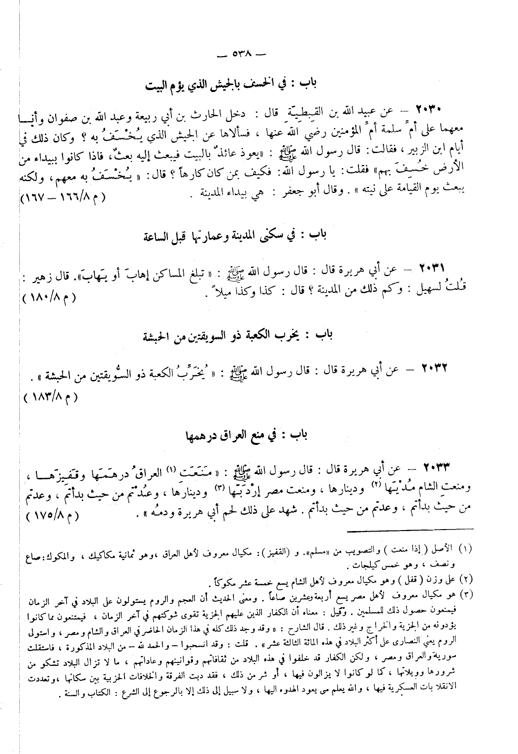 (¬1) الأصل (إذا منعت) والتصويب من "مسلم". و (القفيز): مكيال معروف لأهل العراق، وهو ثمانية مكاكيك، والمكوك: صاع ونصف، وهو خمس كيلجات.