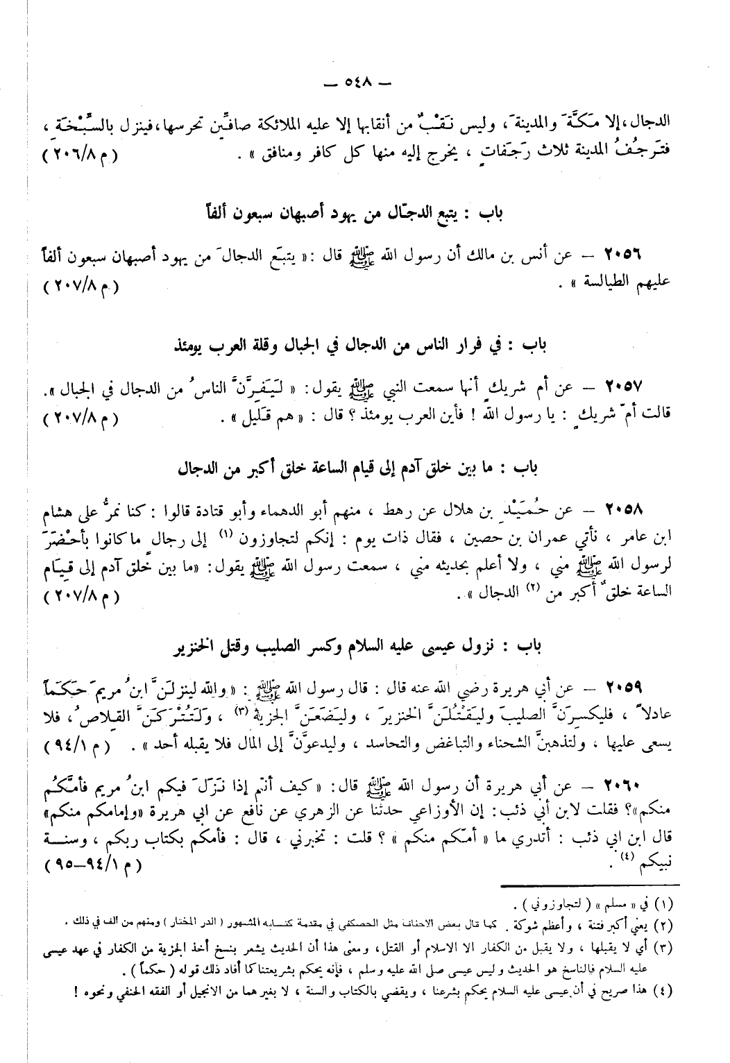 (¬4) هذا صريح في أن عيسى عليه السلام يحكم بشرعنا، ويقضي بالكتاب والسنة، لا بغيرهما من الإنجيل أو الفقه الحنفي ونحوه!