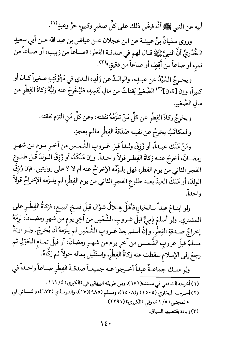 ومن ملك عبدا أو رزق ولدا قبل غروب الشمس من آخر يوم من شهر رمضان أخرج عنه زكاة الفطر قولا واحدا وإن ملكه أو رزق الولد قبل طلوع الفجر الثاني من يوم الفطر فهل يلزمه الإخراج عنه أم لا؟ على روايتين فإن رزق الوالد أو ملك العقد بعد طلوع الفجر الثاني من يوم الفطر لم يلزمه الإخراج قولا واحدا.