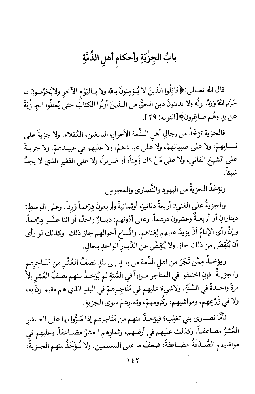 قال الله تعالى (قاتلوا الذين لا يؤمنون بالله ولا باليوم الآخر ولا يحرمون ما حرم الله ورسوله ولا يدينون دين الحق من الذين أوتوا الكتاب حتى يُعطُوا الجزية عن يد وهم صاغرون) التوبة 29)
