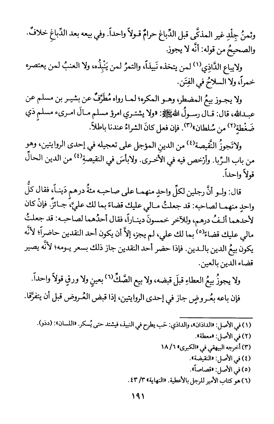 ولا يباع الداذي لمن يتخذه نبيذا والتمر لمن ينبذه ولا العنب لمن يعتصره خمرا ولا السلاح في الفتن.
