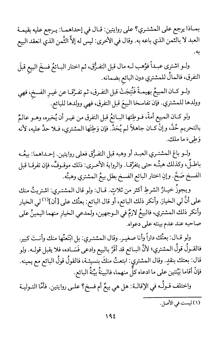 واختلف قوله في الإقالة: هل هي بيع أم فسخ؟ على روايتين فأما التولية