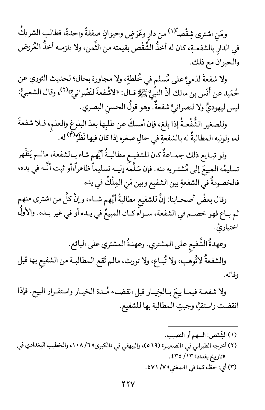 والشفعة لا تُوهب, ولا تباع, ولا تورث, ما لم تقع المطالبة من الشفيع بها قبل وفاته.