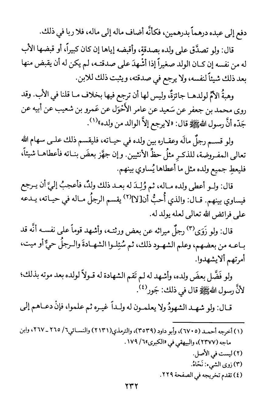 قال: ولو أعطى ولده ماله, ثم وُلد له بعد ذلك ولد, فأعجب إلي أن يرجع فيساوي بينهم. قال: والذي أحب أن لا يقسم الرجل ماله في حياته, يدعه على فرائض الله تعالى لعله يولد له.