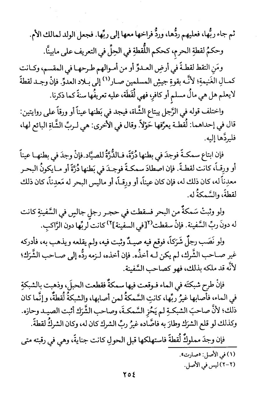 ومن التقط لقطة في أرض العدو أو من أموالهم طرحها في المقسم, وكانت كمالِ الغنيمة؛ لأنه بقوة جيش المسلمين صار إلى بلاد العدو. فإن وجد لقطة لا يعلم هل هي من مال مسلم أو كافر, فهي لقطة, عليه تعريفها سنة كما ذكرنا.
