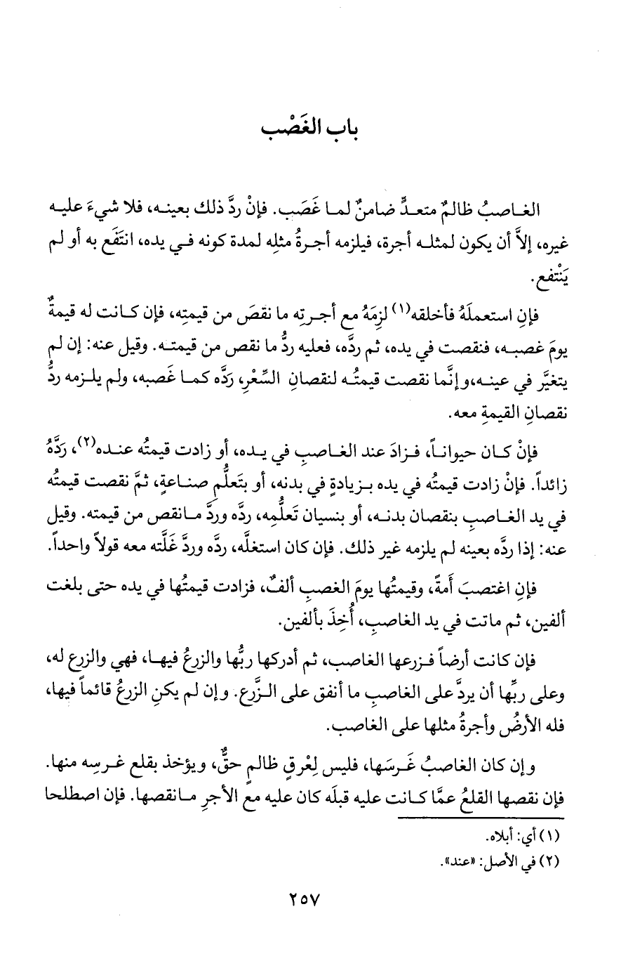 الغاصب ظالم معتد ضامن لما غصب. فإن رد ذلك بعينه, فلا شيء عليه غيره, إلا أن يكون لمثله أجرة, فيلزمه أجرة مثله لمدة كونه في يده, انتفع به أو لم ينتفع.