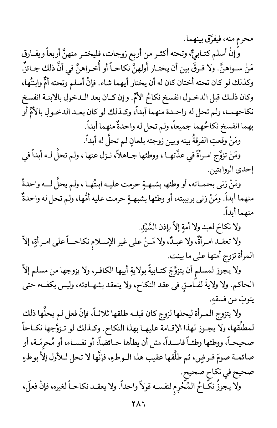 ولا يتزوج المرأة ليحلها لزوج كان قبله طلقها ثلاثا, فإن فعل لم يحلها ذلك لمطلقها, ولا يجوز لهذا الإقامة عليها بهذا النكاح. وكذلك لو تزوجها نكاحا صحيحا, ووطئها وطئا فاسدا, مثل أن يطأها حائضا, أو نفساء, أو محرمة, أو صائمة صوم فرض, ثم طلقها عقيب هذا الوطء, فإنها لا تحل للأول إلا بوطء صحيح في نكاح صحيح.
