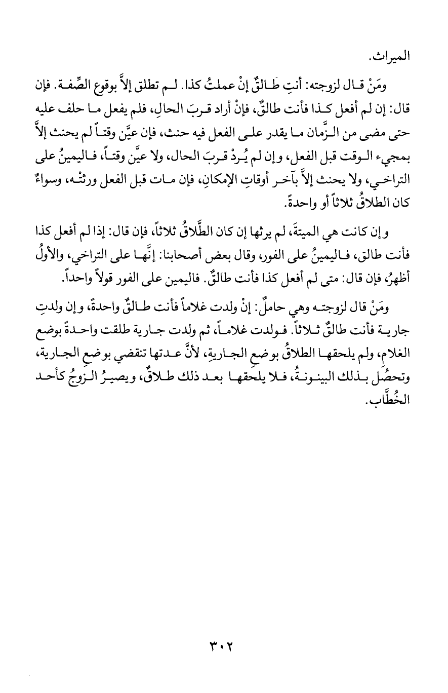 ومن قال لزوجته: أنت طالق إن عملتِ كذا. لم تطلق إلا بوقوع الصفة. فإن قال: إن لم أفعل كذا فأنت طالق, فإن أراد قرب الحال, فلم يفعل ما حلف عليه حتى مضى من الزمان ما يقدر على الفعل فيه حنث, فإن عين وقتا لم يحنث إلا بمجيء الوقت قبل الفعل, وإن لم يُرد قرب الحال, ولا عين وقتا, فاليمين على التراخي, ولا يحنث إلا بآخر أوقات الإمكان, فإن مات قبل الفعل ورثته, وسواء كان الطلاق ثلاثا أو واحدة.