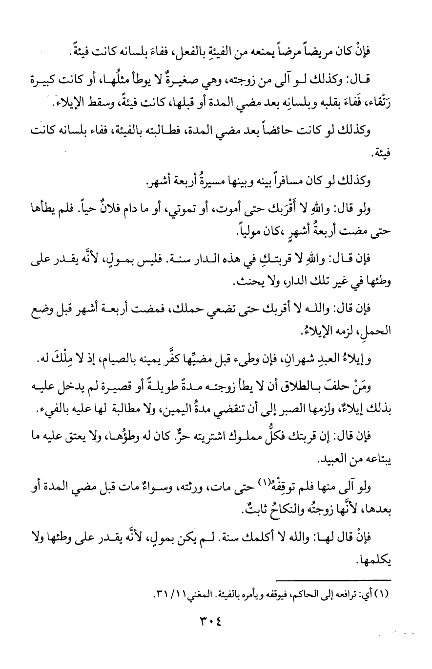 ومن حلف بالطلاق ألا يطأ زوجته مدة طويلة أو قصيرة لم يدخل عليه بذلك إيلاء, ولزمها الصبر إلى أن تنقضي مدة اليمين, ولا مطالبة لها عليه بالفيء.