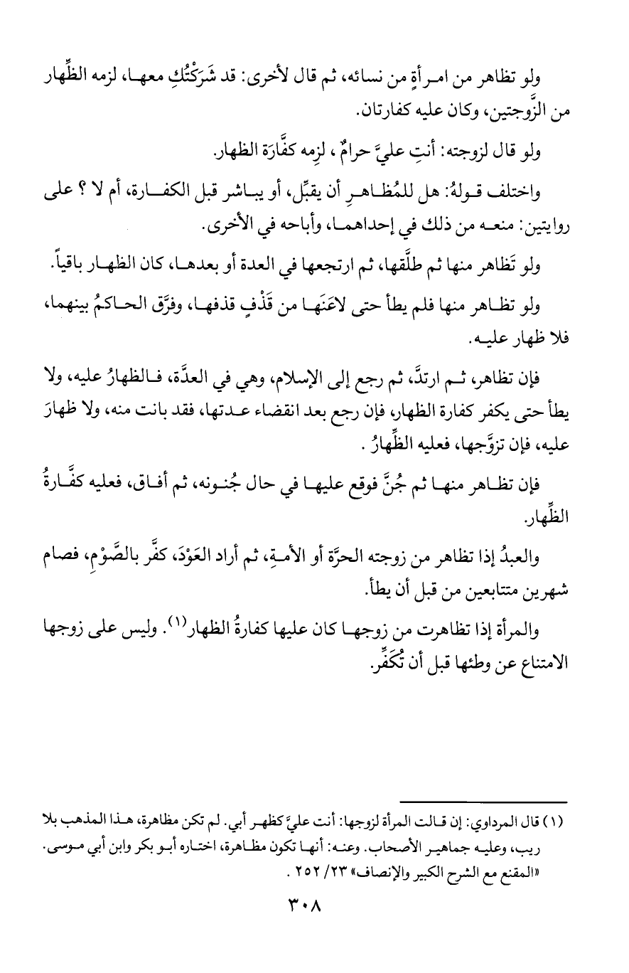 واختلف قوله: هل للمظاهر أن يقبِّل, أو يباشر قبل الكفارة, أم لا؟ على روايتين: منع من ذلك في إحداهما, وأباحه في الأخرى.