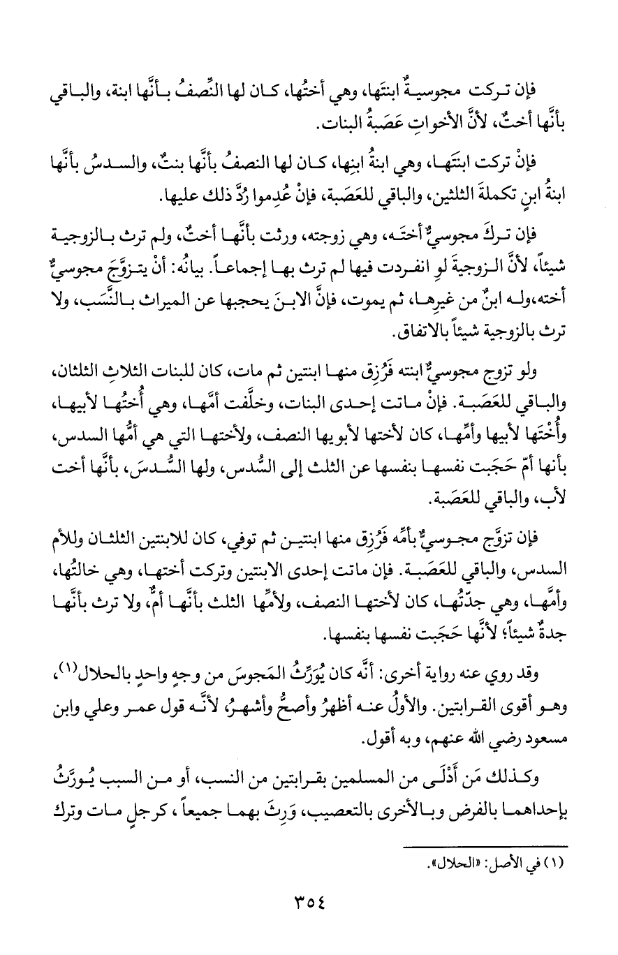 وقد روي عنه رواية أخرى: أنه كان يورث المجوس من وجه واحد بالحلال, وهو أقوى القرابتين. والأول عنه أظهر وأصح وأشهر, لأنه قول عمر وعلي وابن مسعود رضي الله عنهم, وبه أقول.
