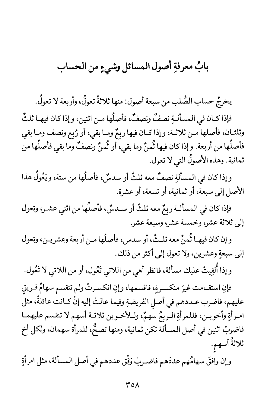 يخرج حساب الصلب من سبعة أصول: منها ثلاثة تعول, وأربعة لا تعول.