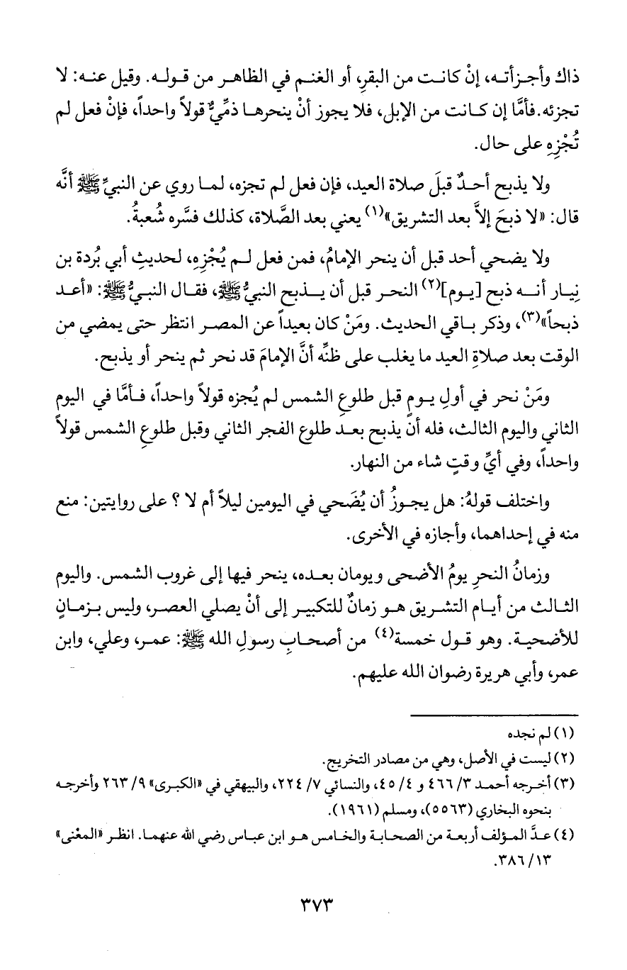 وزمان النحر يوم الأضحى ويومان بعده, ينحر فيها إلى غروب الشمس. واليوم الثالث من أيام التشريق هو زمان للتكبير إلى أن يصلي العصر, وليس بزمان للأضحية. وهو قول خمسة من أصحاب رسول الله صلى الله عليه وسلم: عمر, وعلي, وابن عمر, وأبي هريرة رضوان الله عليهم.