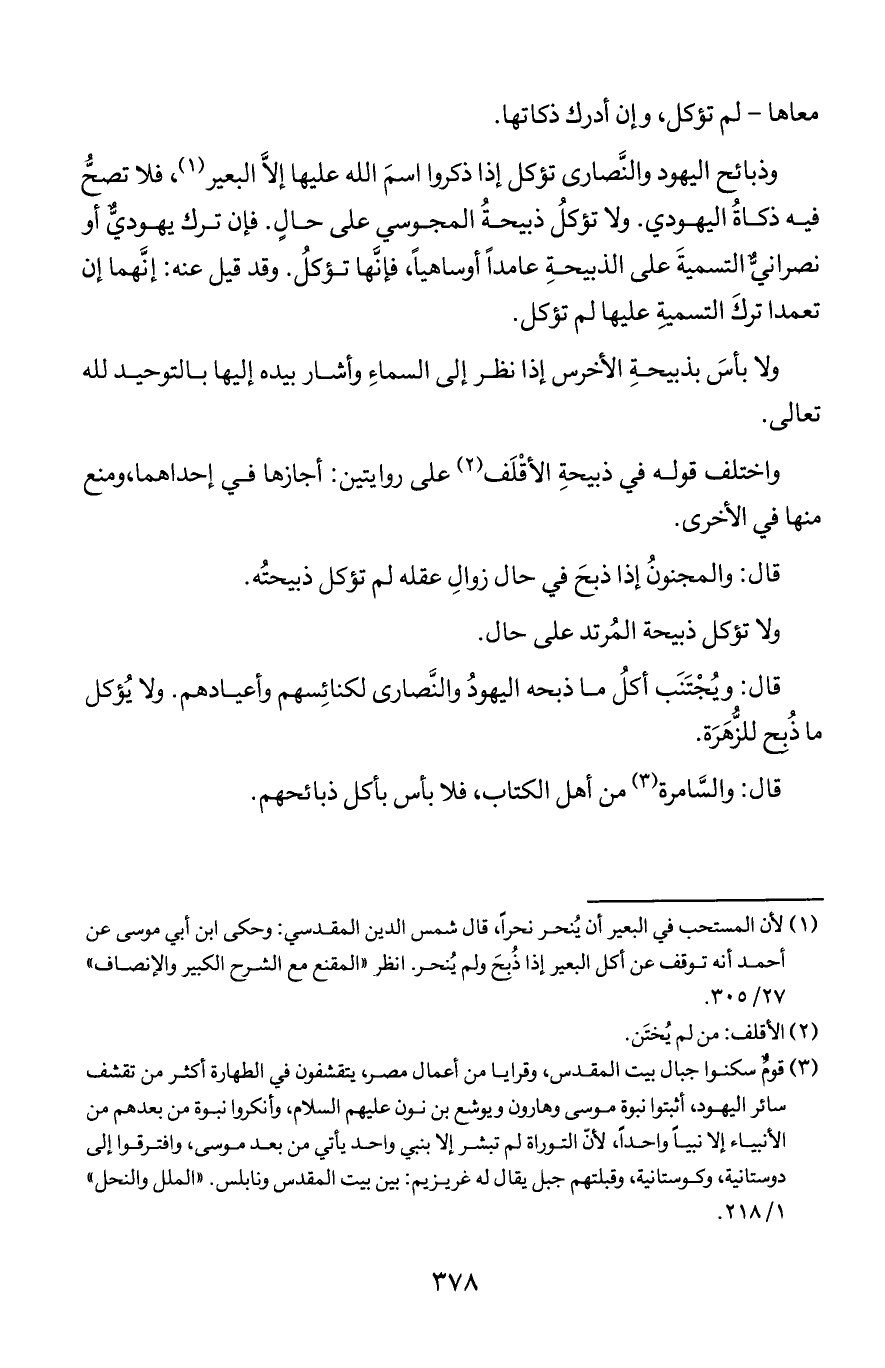 قال: والسامرة من أهل الكتاب, فلا بأس بأكل ذبائحهم.
