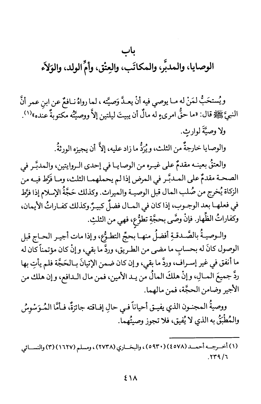 الوصايا, والمدبَّر, والمكاتَب, والعتق, وأم الولد, والولاء