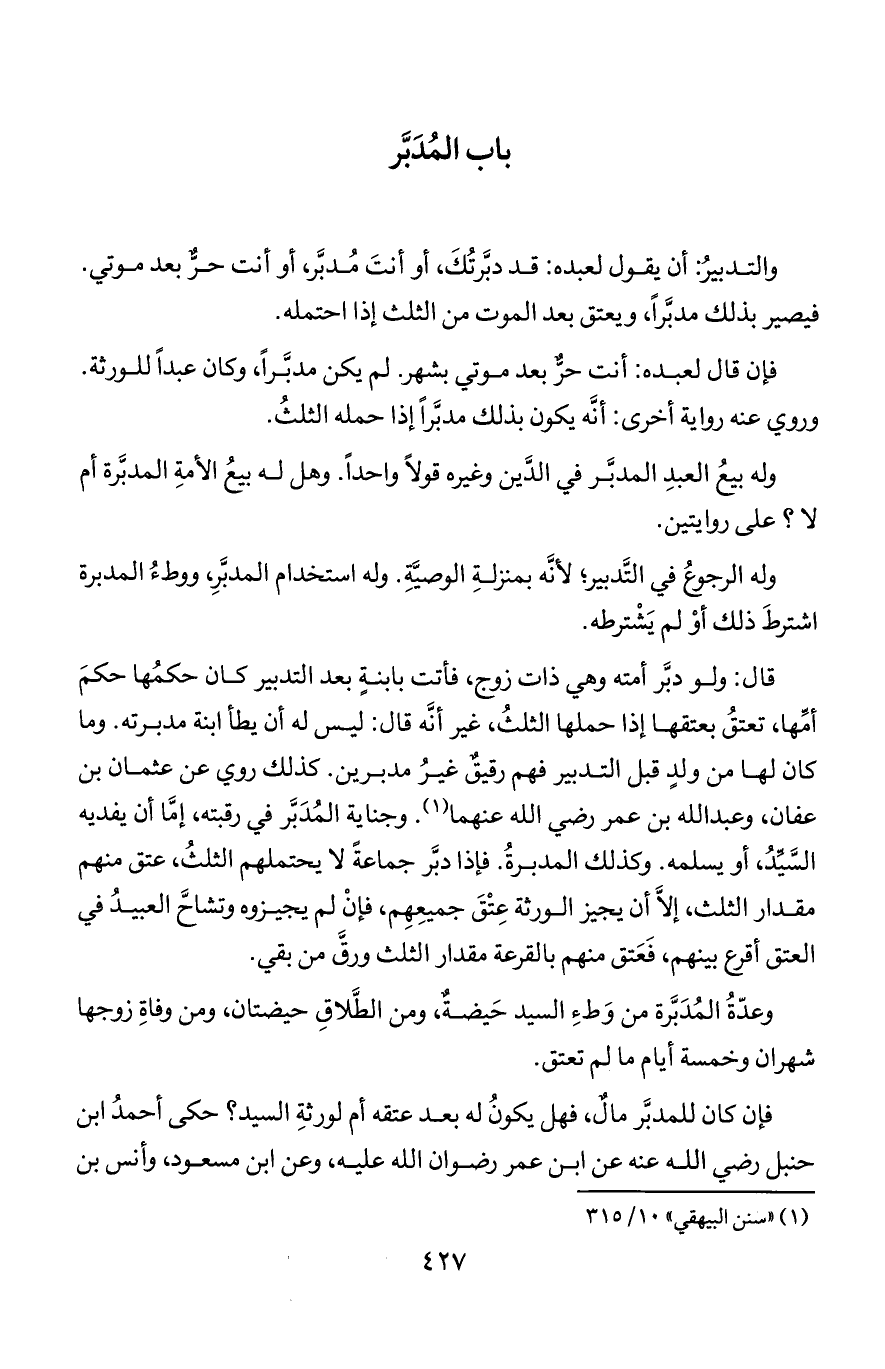 قال: ولو دبر أمته وهي ذات زوج, فأتت بابنة بعد التدبير كان حكمها حكم أمها, تعتق بعتقها إذا حملها الثلث, غير أنه قال: ليس له أن يطأ ابنة مدبرته. وما كان لها من ولد قبل التدبير فهم رقيق غير مدبرين. كذلك روي عن عثمان بن عفان, وعبدالله بن عمر رضي الله عنهما. وجناية المدبر في رقبته, إما أن يفديه السيد, أو يسلمه. وكذلك المدبرة. فإذا دبر جماعة لا يحتملهم الثلث, عتق منهم مقدار الثلث, إلا أن يجيز الورثة عتق جميعهم, فإن لم يجيزوه وتشاح العبيد في العتق أقرع بينهم, فعتق منهم بالقرعة مقدار الثلث ورق من بقي.
