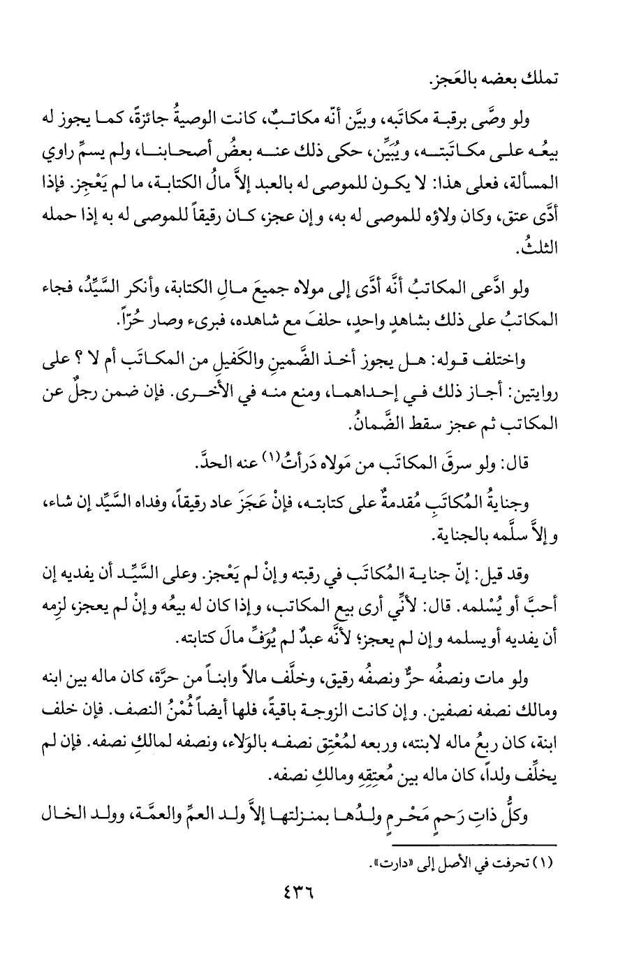 ولو ادعى المكاتب أنه أدى إلى مولاه جميع مال الكتابة, وأنكر السيد, فجاء المكاتب على ذلك بشاهد واحد, حلف مع شاهده, فبرئ وصار حرا.