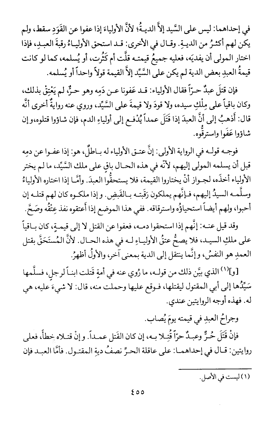 فوجه قوله في الرواية الأولى: إن عتق الأولياء له باطل, هو: إذا عفوا عن دمه قبل أن يسلمه المولى إليهم, لأنه في هذه الحال باق على ملك السيد, ما لم يختر الأولياء أخذه, لجواز أن يختاروا القيمة, فلا يستحقوا العبد. وأما إذا اختاره الأولياء وسلمه السيد إليهم, فإنهم يملكون رقبته بالقبض. وإذا ملكوه كان لهم قتله إن أحبوا, ولهم أيضا استحياؤه واسترقاقه. ففي هذا الموضع إذا أعتقوا نفذ عتقه وصح.