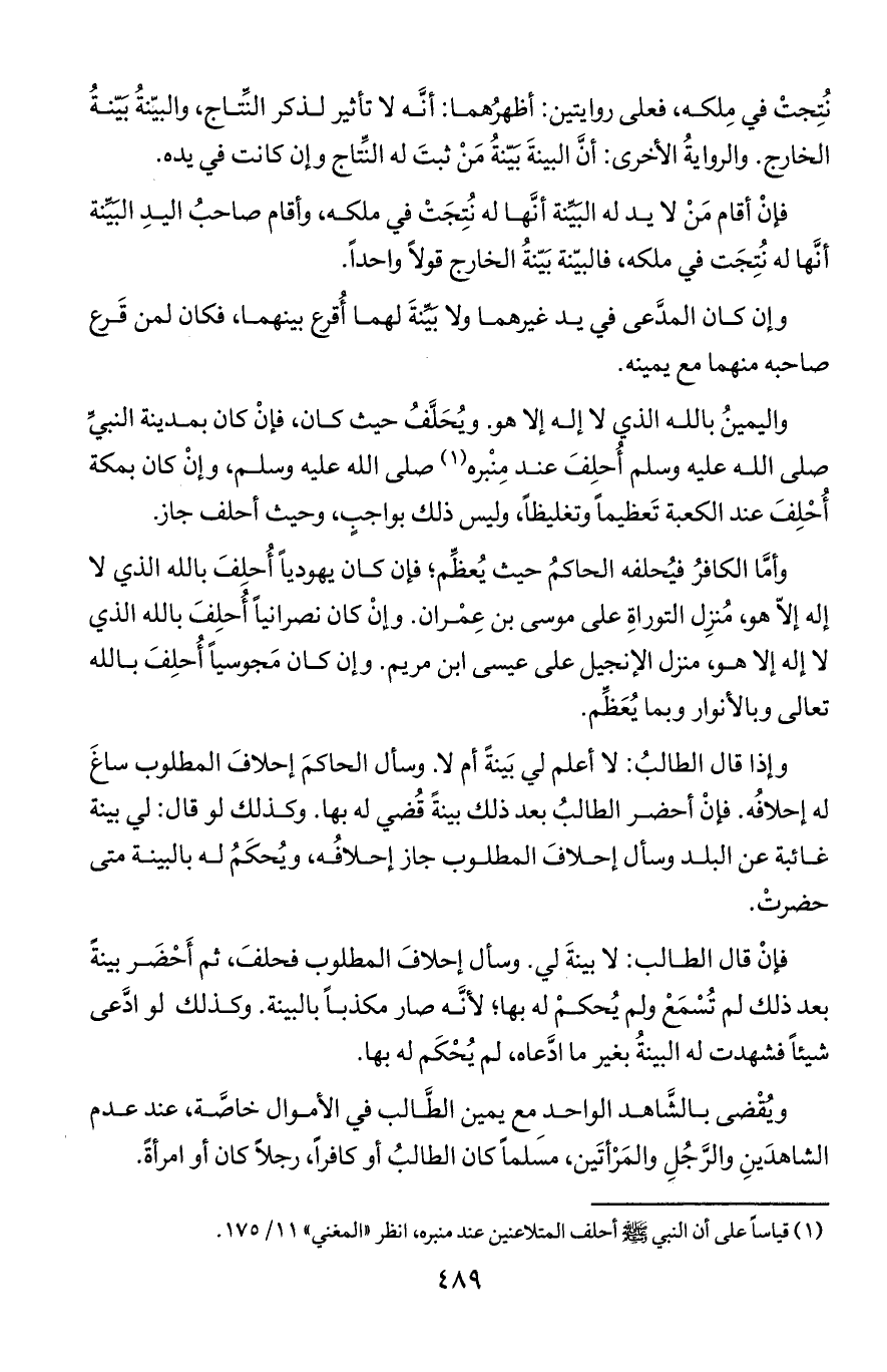 ويقضى بالشاهد الواحد مع يمين الطالب في الأموال خاصة, عند عدم الشاهدين والرجل والمرأتين, مسلما كان الطالب أو كافرا, رجلا أو امرأة.
