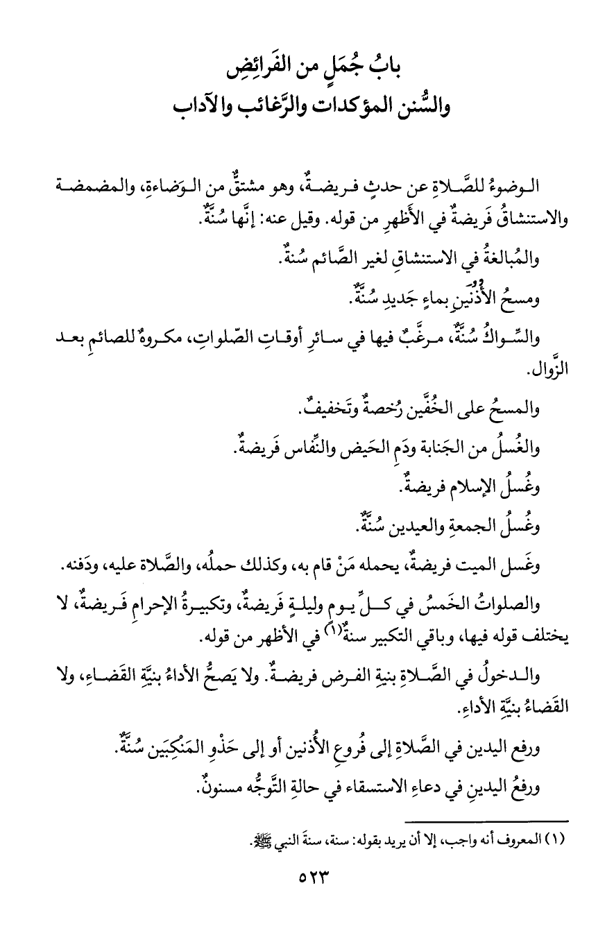 الوضوء للصلاة عن حدث فريضة, وهو مشتق من الوضاءة, والمضمضة والاستنشاق فريضة في الأظهر من قوله. وقيل عنه: إنها سنة.