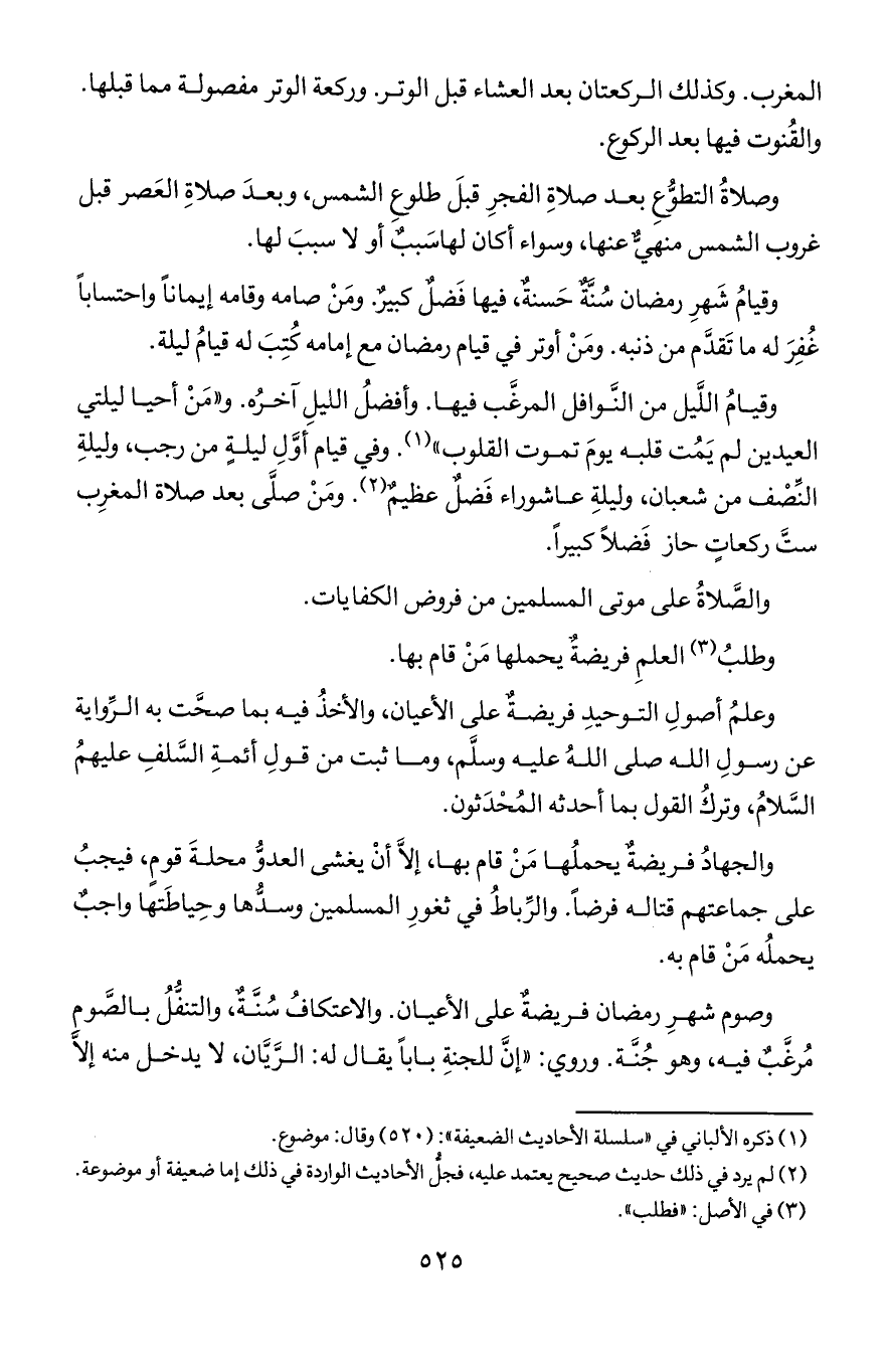 وعلم أصول التوحيد فريضة على الأعيان, والأخذ فيه بما صحت به الرواية عن رسول الله صلى الله عليه وسلم, وما ثبت من قبول أئمة السلف عليهم السلام, وترك القول بما أحدثه المحدثون.