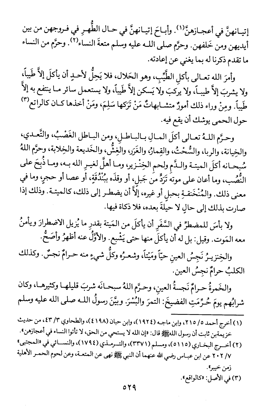 وأمر الله تعالى بأكل الطيب, وهو الحلال, فلا يحل لأحد أن يأكل إلا طيبا, ولا يشرب إلا طيبا, ولا يركب إلا طيبا, ولا يستعمل سائر ما ينتفع به إلا طيبا. ومن وراء ذلك أمور متشابهات من تركها سلم, ومن أخذها كان كالراتع حول الحمى يوشك أن يقع فيه.