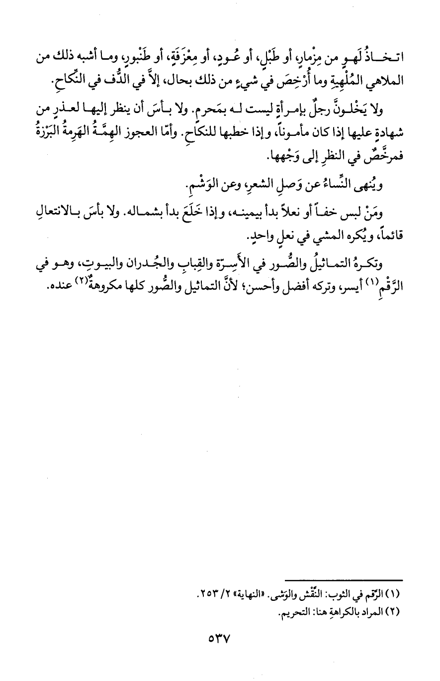 اتخاذ لهو من مزمار, أو طبل, أو عود, أو معزفة, أو طنبور, وما أشبه ذلك من الملاهي الملهية وما أُرخص في شيء من ذلك بحال, إلا في الدف في النكاح.
