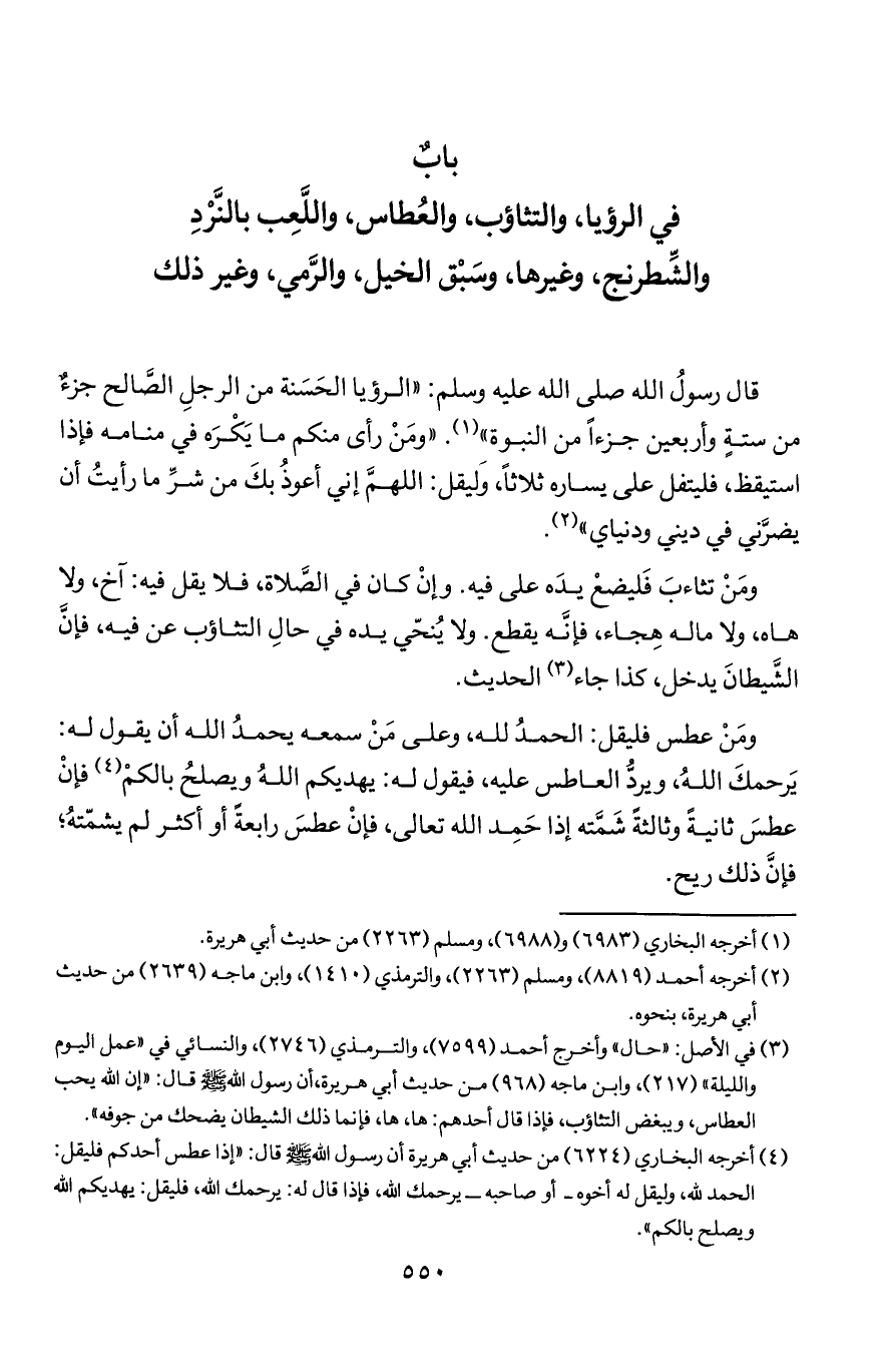 في الرؤيا, والتثاؤب, والعطاس, واللعب بالنرد