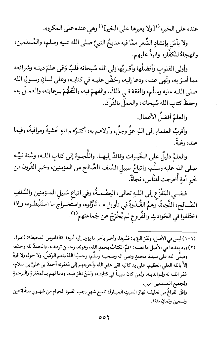 والعلم دليل على الخيرات وقائد إليها. واللجوء إلى كتاب الله, وسنة نبيه صلى الله عليه وسلم, واتباع سبيل السلف الصالح من المؤمنين, وخير القرون من خير أمة أخرجت للناس, نجاة.