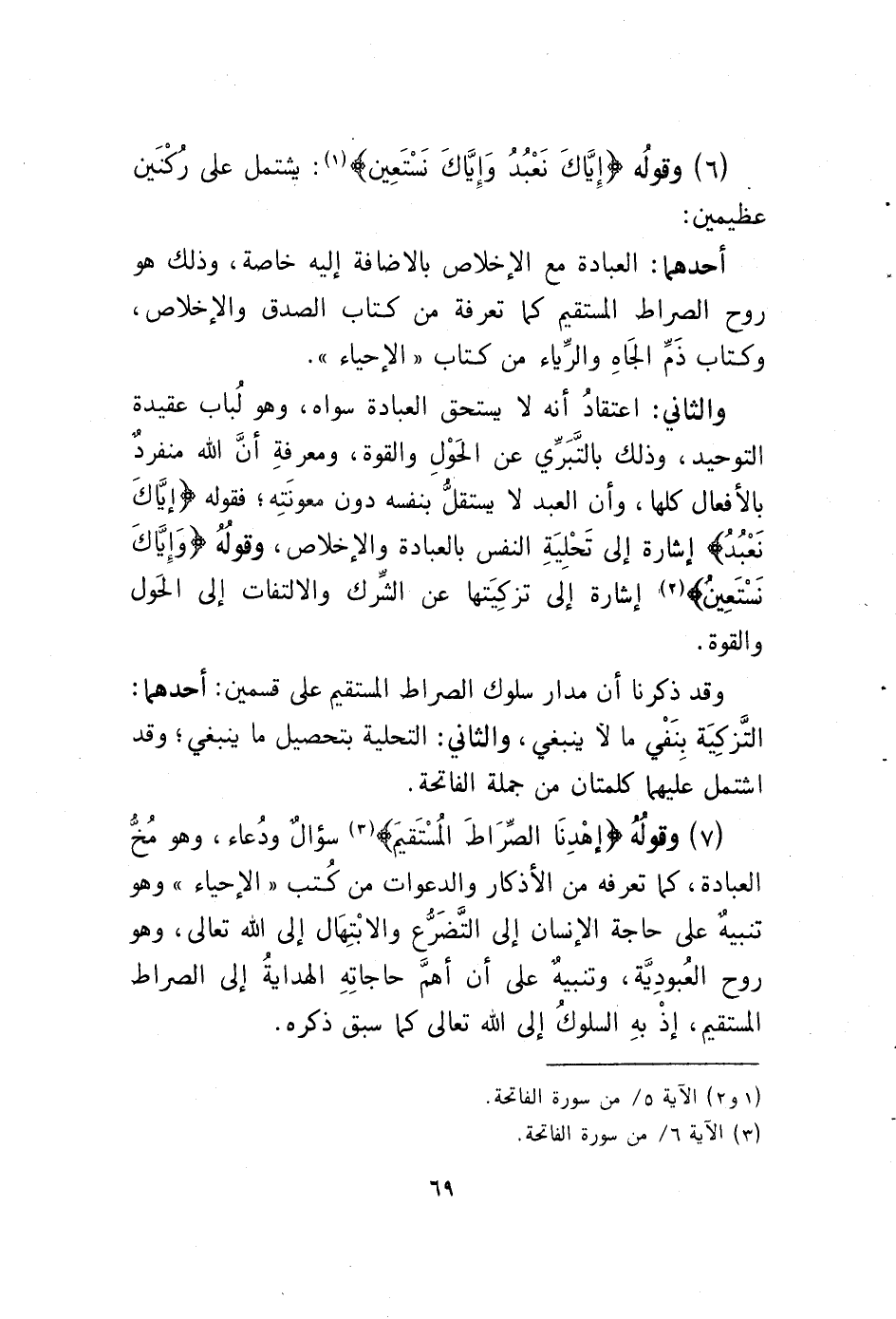 أحدهما: العبادة مع الإخلاص بالاضافة إليه خاصة، وذلك هو روح الصراط المستقيم كما تعرفة من كتاب الصدق والإخلاص، وكتاب ذَمِّ الجَاهِ والرِّياء من كتاب "الإحياء".