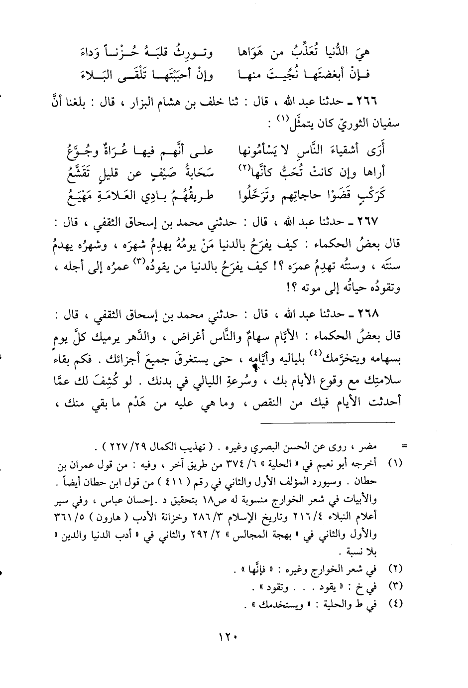 246 - ثنا خَلَفُ بْنُ هِشَامٍ الْبَزَّارُ، قَالَ: بَلَغَنَا أَنَّ سُفْيَانَ الثَّوْرِيَّ كَانَ يَتَمَثَّلُ: