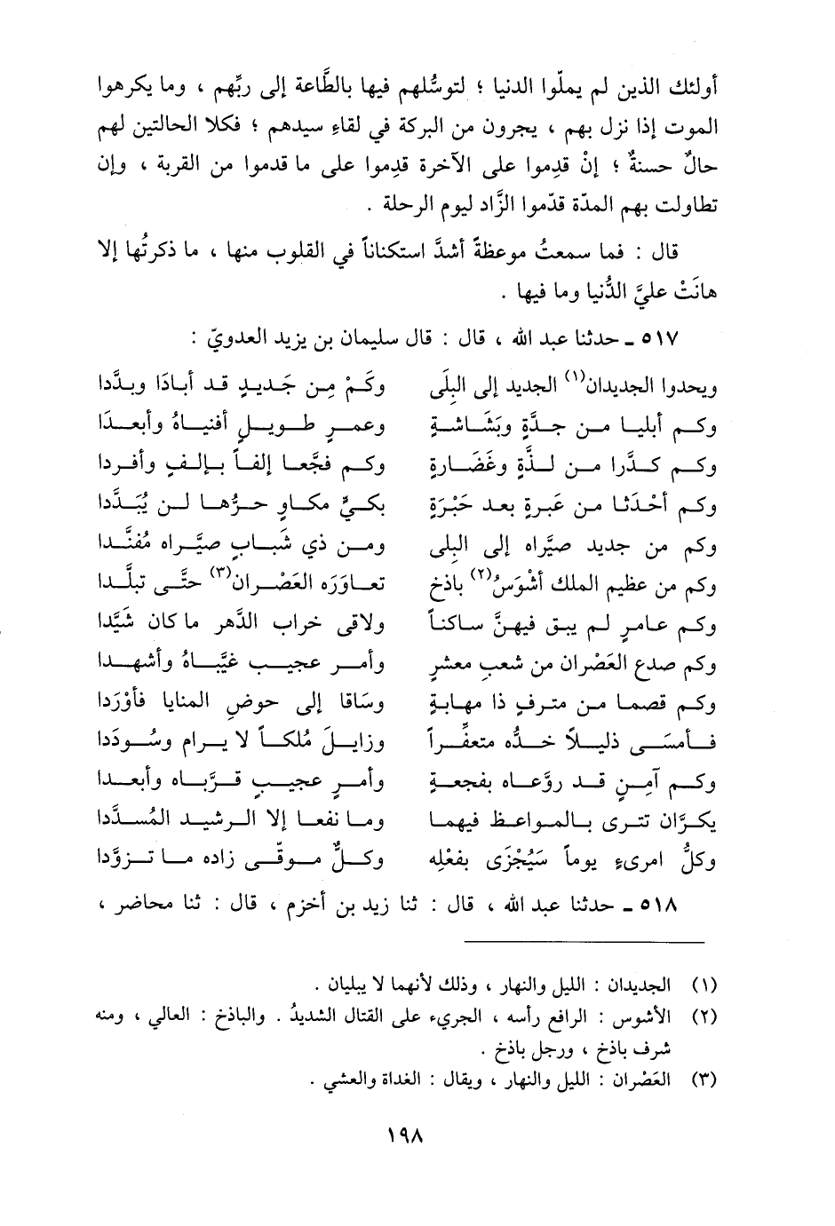 يَخْتَلِفُ اللَّيْلُ وَالنَّهَارُ عَلَى ... عُمْرٍ قَصِيرٍ مُوَفَّرِ الْأَمَلِ
