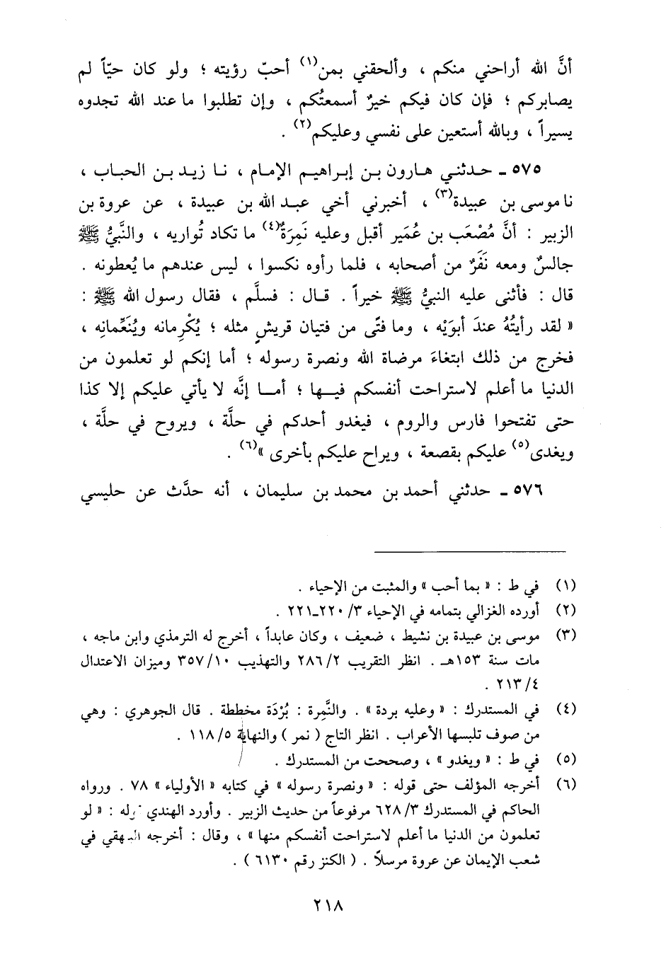507 - حَدَّثَنِي هَارُونُ بْنُ إِبْرَاهِيمَ الْإِمَامُ، نا زَيْدُ بْنُ الْحُبَابِ، نا مُوسَى بْنُ عُبَيْدَةَ، أَخْبَرَنِي أَخِي عَبْدُ اللَّهِ بْنُ عُبَيْدَةَ، عَنْ عُرْوَةَ بْنِ الزُّبَيْرِ، أَنَّ مُصْعَبَ بْنَ عُمَيْرٍ أَقْبَلَ وَعَلَيْهِ نَمِرَةٌ مَا تَكَادُ تُوَارِيهِ، وَالنَّبِيُّ صَلَّى اللَّهُ عَلَيْهِ وَسَلَّمَ جَالِسٌ وَمَعَهُ نَفَرٌ مِنْ أَصْحَابِهِ، فَلَمَّا رَأَوْهُ نَكَّسُوا، لَيْسَ عِنْدَهُمْ مَا يُعْطُونَهُ قَالَ: فَأَثْنَى عَلَيْهِ النَّبِيُّ صَلَّى اللَّهُ عَلَيْهِ وَسَلَّمَ خَيْرًا قَالَ: فَسَلَّمَ، فَقَالَ رَسُولُ اللَّهِ صَلَّى اللَّهُ عَلَيْهِ وَسَلَّمَ: «لَقَدْ §رَأَيْتُهُ عِنْدَ أَبَوَيْهِ، وَمَا فَتًى مِنْ فَتَيَانِ قُرَيْشٍ مِثْلَهُ، يُكْرِمَانِهِ وَيُنَعِّمَانِهِ، فَخَرَجَ مِنْ ذَلِكَ ابْتِغَاءَ مَرْضَاةِ اللَّهِ وَنُصْرَةَ رَسُولِهِ، أَمَا إِنَّكُمْ لَا يَأْتِي عَلَيْكُمْ إِلَّا كَذَا حَتَّى تَفْتَحُوا فَارِسَ وَالرُّومَ، فَيَغْدُو أَحَدُكُمْ فِي حُلَّةٍ، وَيَرُوحُ فِي حُلَّةٍ، وَيُغْدَى عَلَيْكُمْ بِقَصْعَةٍ، وَيُرَاحُ عَلَيْكُمْ بِأُخْرَى»